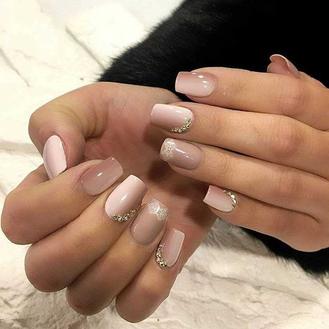 В таком случае оптимальным решением будет пудровый или нюдовый лак с белым подтоном, а также выразительный эффект омбре с использованием теплой палитры.
