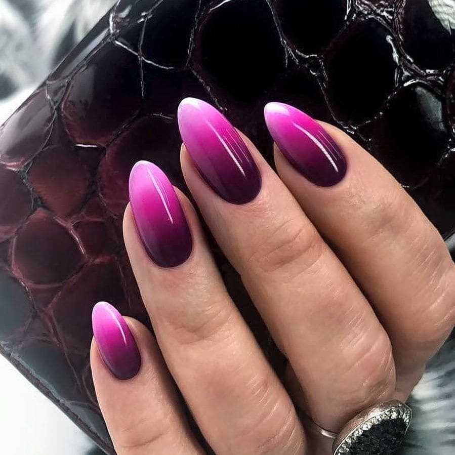 Стиль омбре появился довольно давно, немного позже, чем сам стиль окрашивания волос. Подходит среднему и длинному типу ногтей. Принцип нанесения данного стиля прост: база ногтя окрашивается в любой желаемый цвет, далее, специальным гель-лаком и губкой наносится цвет светлее тона на конец ногтевой пластины или ее середину, в итоге получается шикарный омбре, говорящий об уникальности и эстетичном внешнем виде. Предпочтительнее брать в основу цвета светлые тона, но такая палитра больше подходит теплым сезонам, зимой же выбирайте оттенок в соответствии с вкусовыми предпочтениями.
