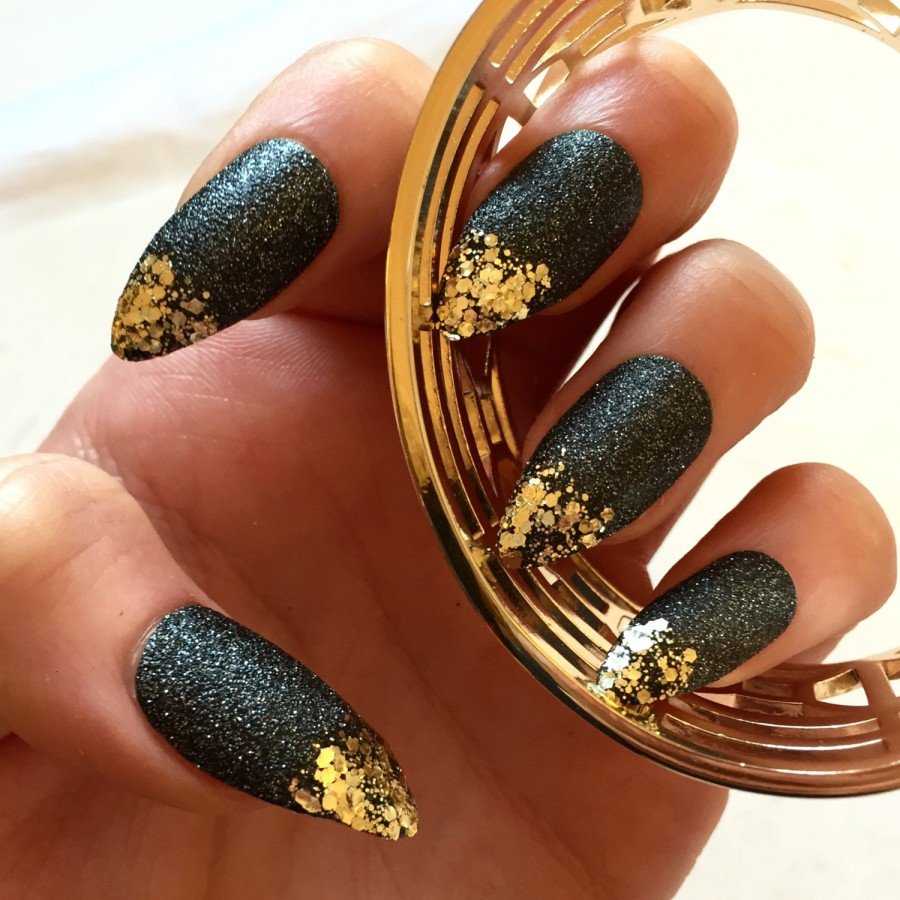 Новинки черного маникюра с золотом 2019: