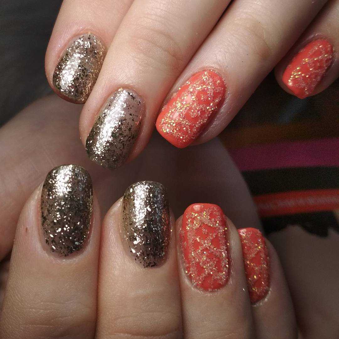Разные ногти оранжевый и зеленый