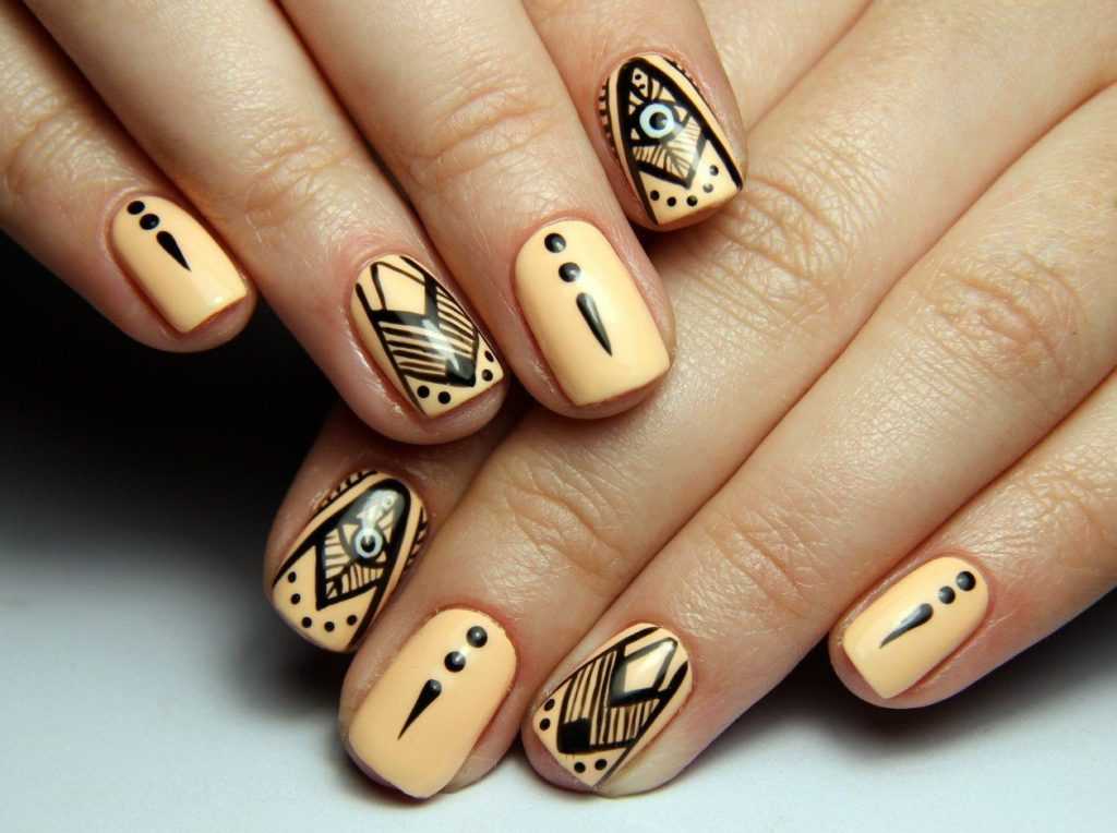 Нейтральные телесные цвета могут стать самостоятельным покрытием или послужить фоном для модных геометрических, флористических или анималистических принтов, металлизированной втирки. Нежный дизайн не предполагает добавления блестящих элементов.