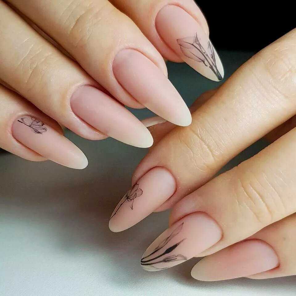 Матовый маникюр на острые ногти 2018