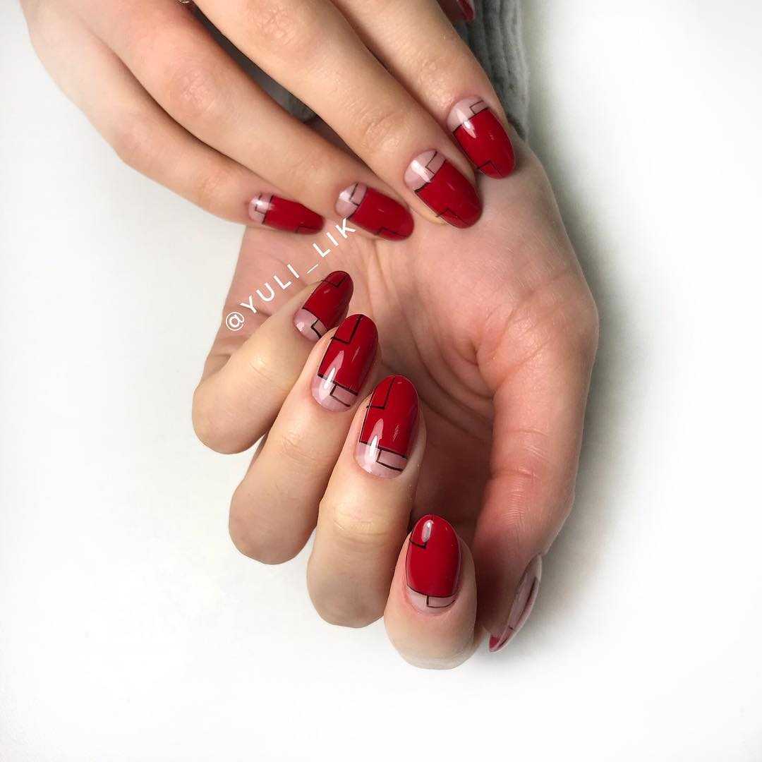 Ультрамодным в этом году считается сочетание улыбки на ногтевой верхушке с негативным пространством. Так называют ногтевую часть, которую покрывают только прозрачным материалом. Её могут оставлять в виде полосок, лунок, геометрии и т.д. Вариант с негативным пространством понравится тем людям, которые предпочитают минимализм в одежде и украшениях, ценят креативность и необычность.