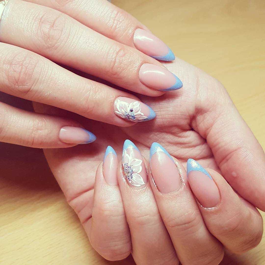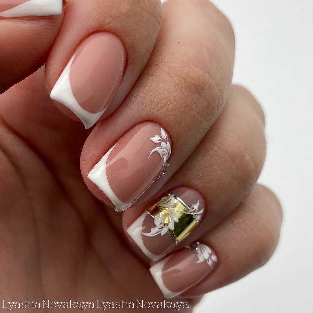 Французский маникюр с цветами
