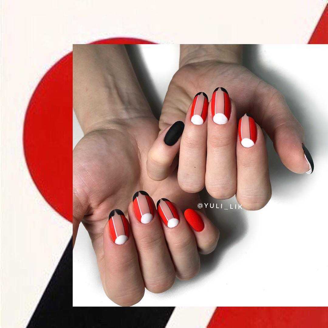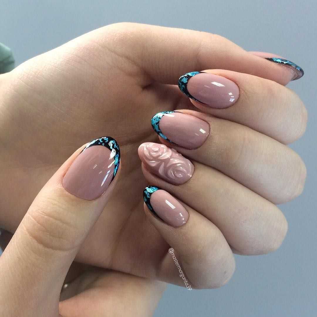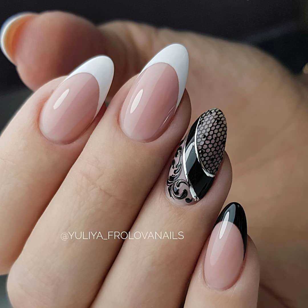 На длинных ногтях сделать френч, где форма улыбки будет отличаться от формы самих ногтей. Отлично смотрится френч ромбом на овальных ногтях. Экспериментировать можно и нужно!
