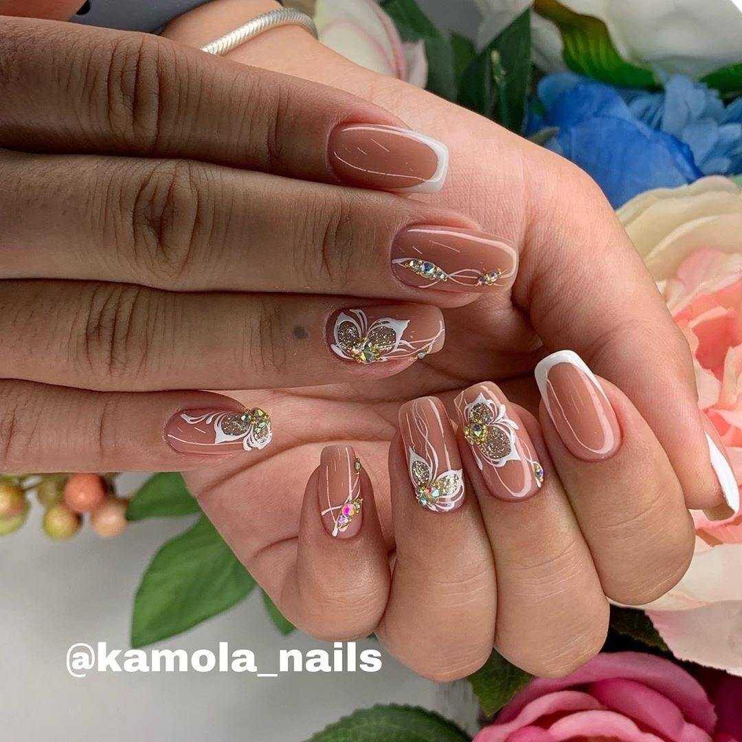 Этот вариант дизайна, как и стразы, пришел к нам из прошлого сезона. Он отлично смотрится на любой форме и длине, подходит как для торжественного случая, так и для повседневной носки. В белом цвете особенно уместен на ручках невест.