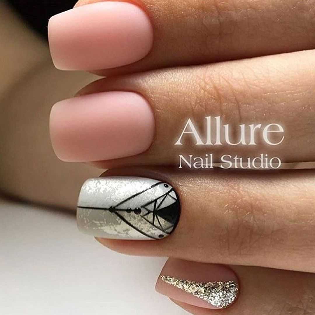 В тренде дизайны с негативным пространством, тонкими линиями серебром или контрастным цветом. Для придания легкости и мягкости сдержанному деловому маникюру используйте глиттер или блестки, «пройдитесь» по ноготкам фольгой, создавая тем самым трендовый и мега-популярный в 2020 году дизайн в стиле «битое стекло». Все это поможет сделать ваш дизайн более интересным и элегантным.