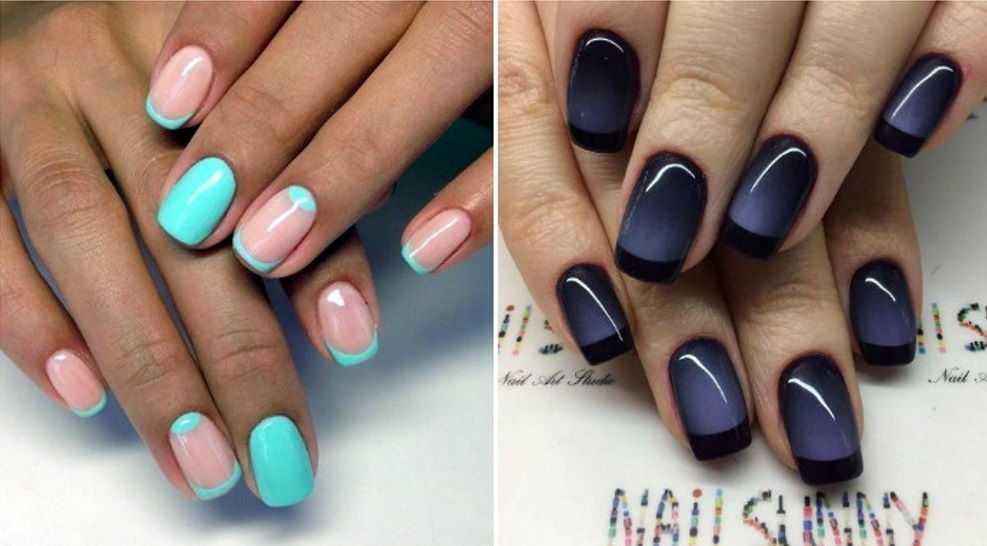 Еще один очень красивый вариант французского маникюра на лето — со сплошным покрытием. Носить их вместе — главный тренд этого лета. Можно добавить рисунки тех же тонов и результат будет намного оригинальнее.