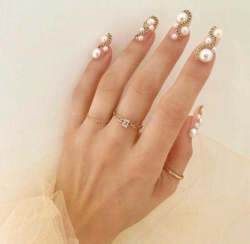 Дуэт «Алиса + Оливия» представил «девушек с жемчугом» на подиуме. Вы можете повторить богатые декорации в стиле барокко, продолжая тенденцию осенне-зимнего сезона, который только что открыт, применив голый ноготь (или окрашенный прозрачным лаком) с миниатюрным жемчугом.