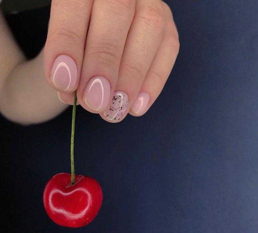 в минималистичном стиле. Маникюр с небольшими одиночными акцентами, размещенными поверх светлой подложки, смотрится очень нежно и эффектно.