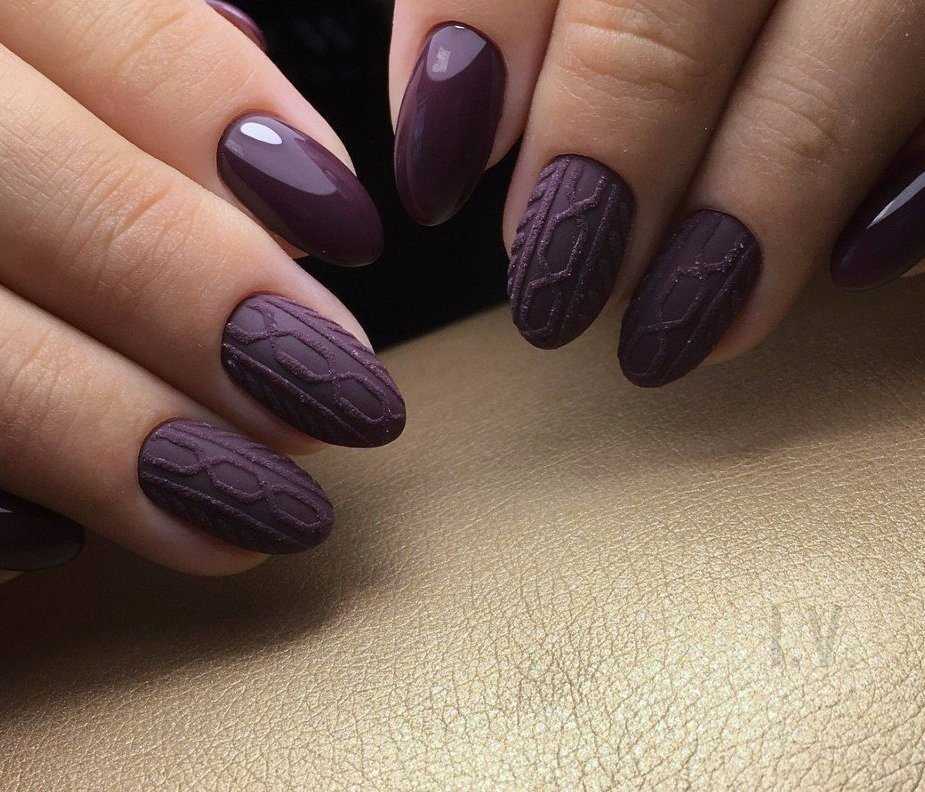 Если вы хотите более необычный и экстравагантный дизайн, то используйте темно-фиолетовый лак в гамме с бирюзовым или изумрудным цветом.