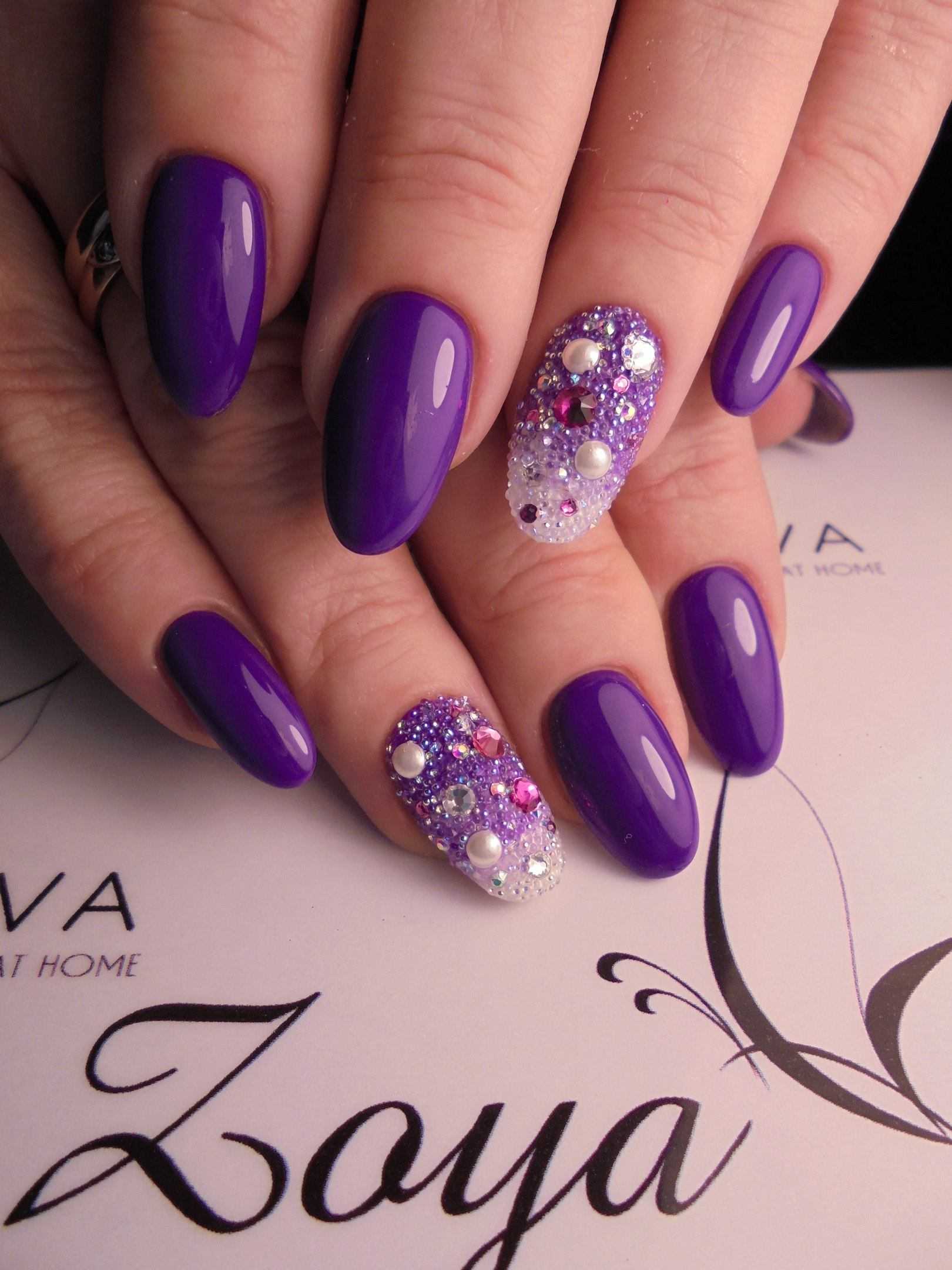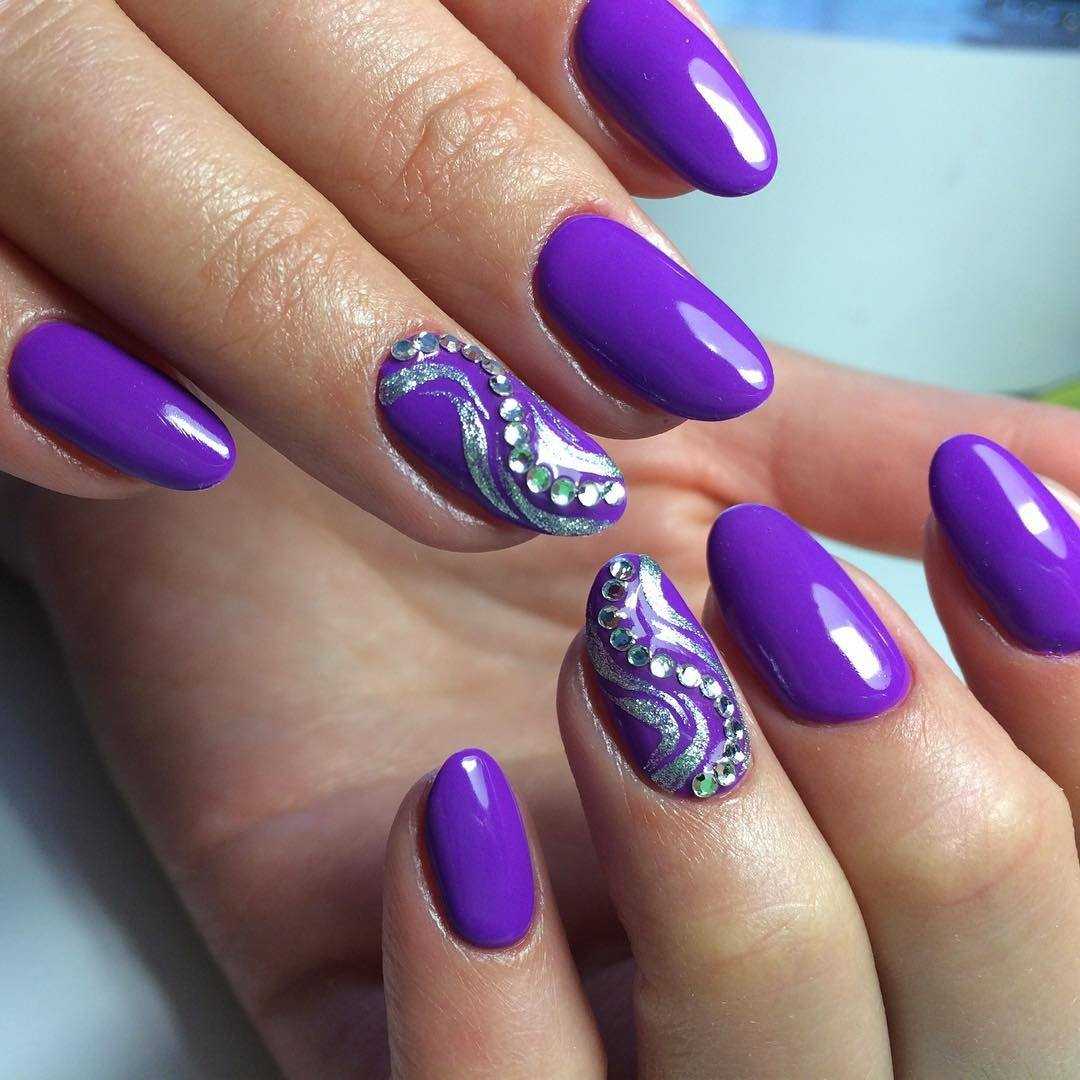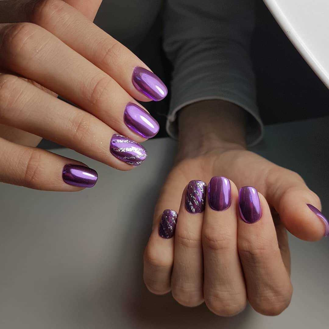 #4 Фиолетовый маникюр с блестящим декором 2020