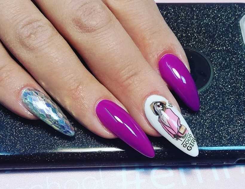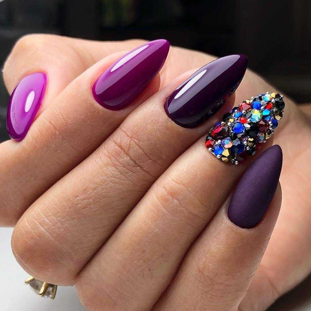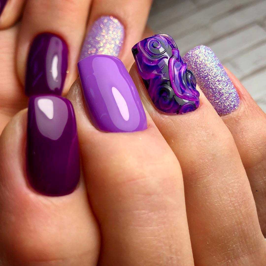 #4 Фиолетовый маникюр с блестящим декором 2020