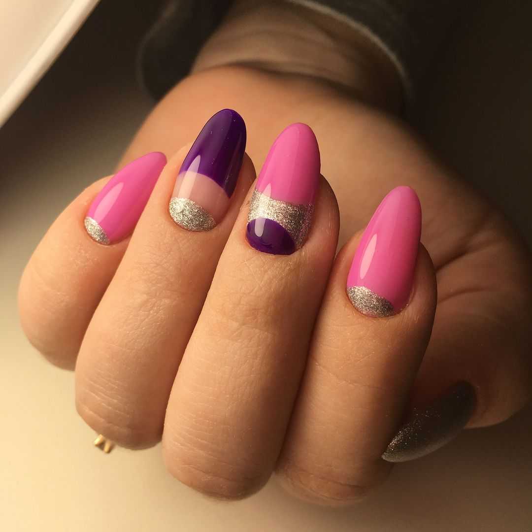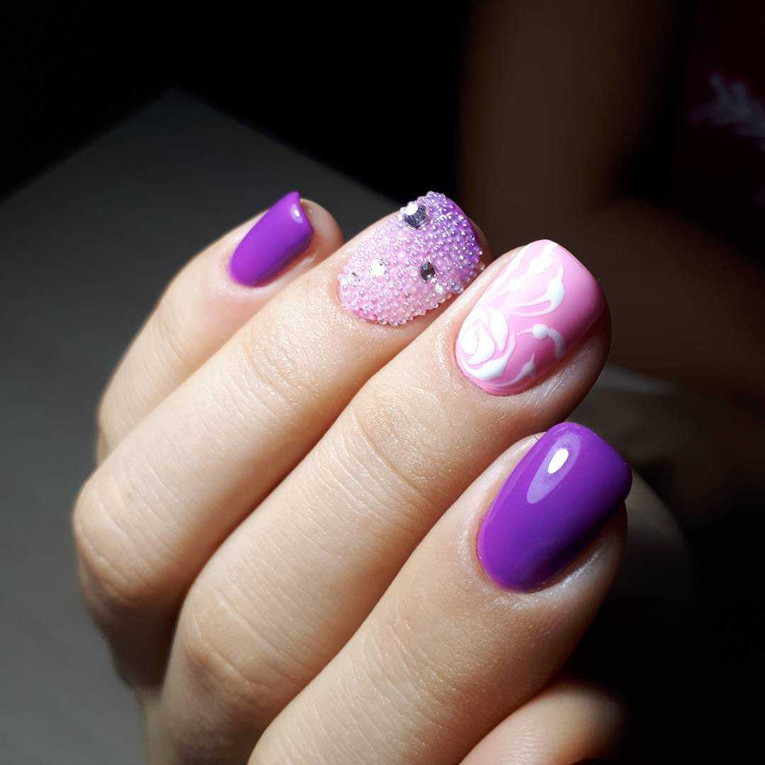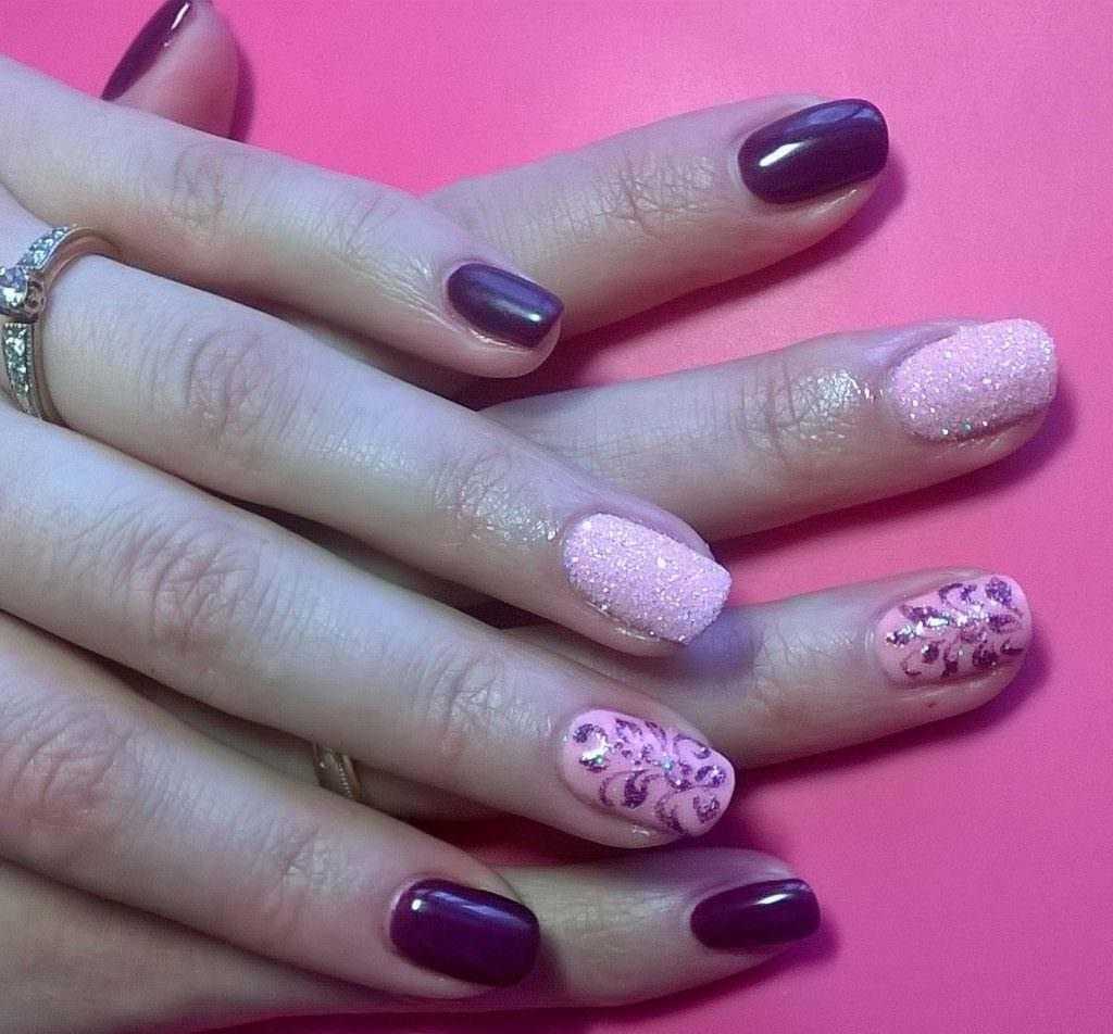 Розовый просто создан для сиреневых тонов. С их помощью можно воплотить в жизнь нежный романтический дизайн маникюра. Стоит руководствоваться правилом — чем темнее и интенсивнее розовый тон, тем темнее и сочнее должен быть фиолетовый.