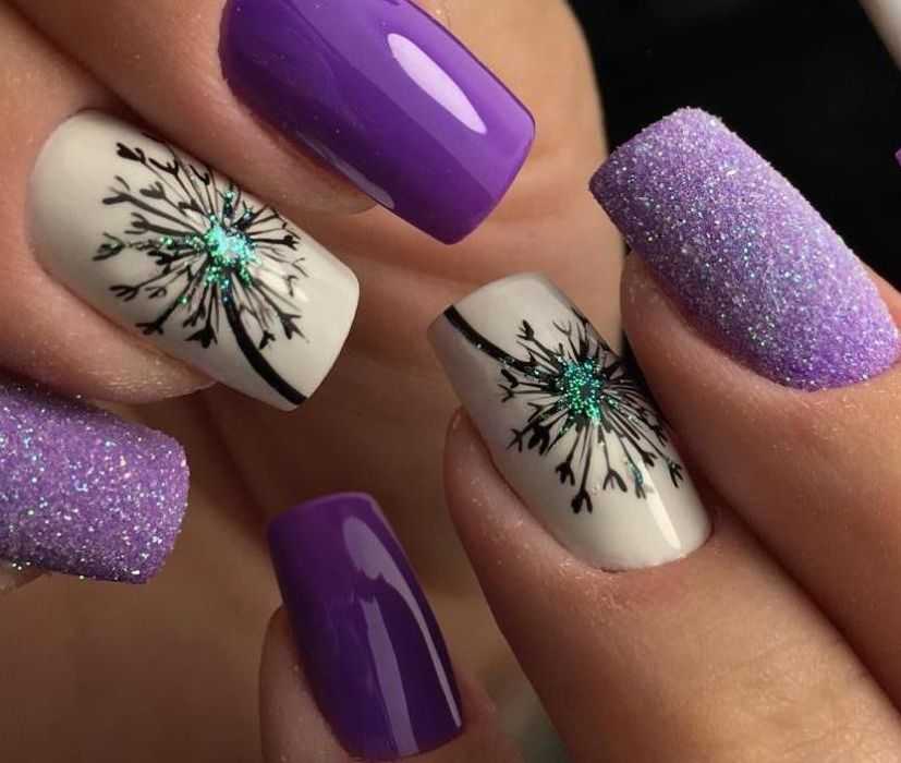 Прекрасный фиолетовый цвет довольно часто используют в качестве основы для любого дизайна. Учитывайте особенности его сочетаемости с другими оттенками. Это обеспечит действительно красивый, современный нейл-арт.