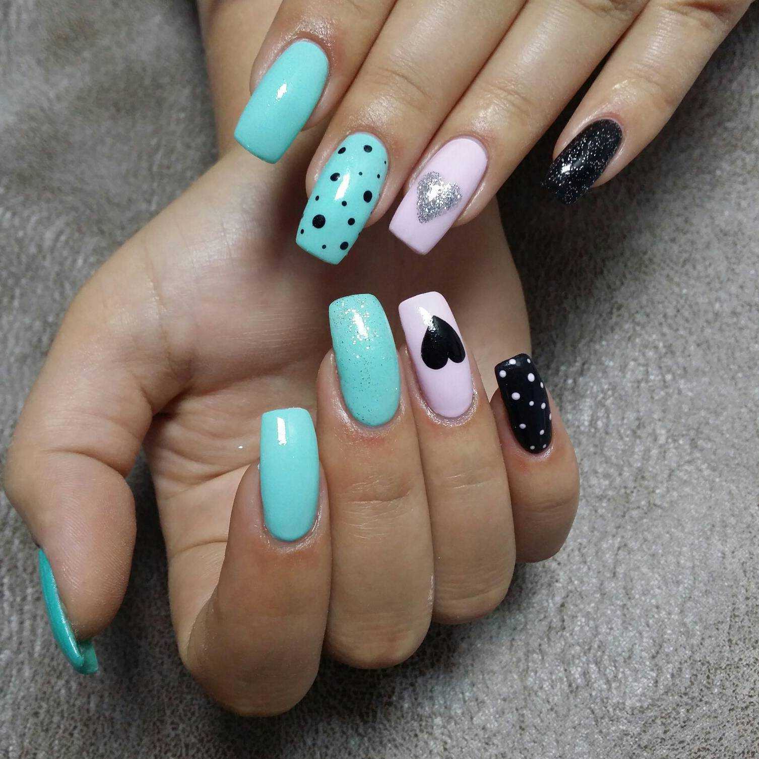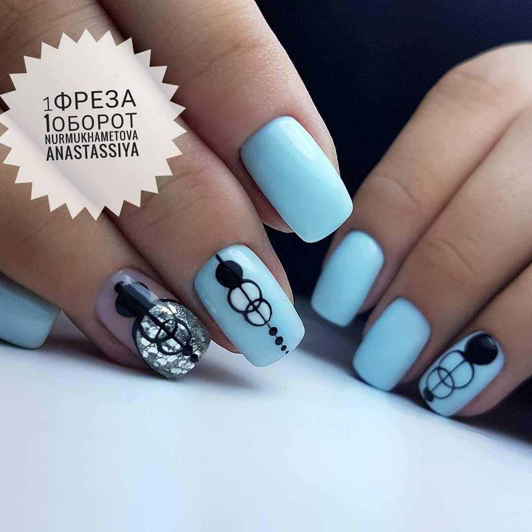 #3 Голубой маникюр с черным 2020