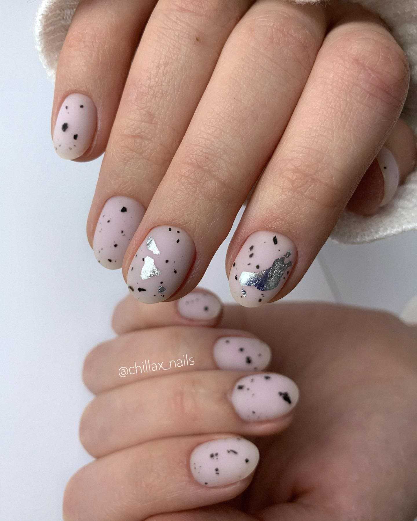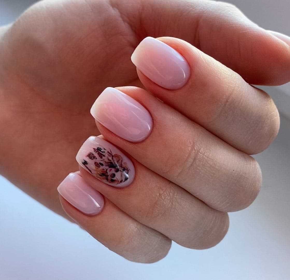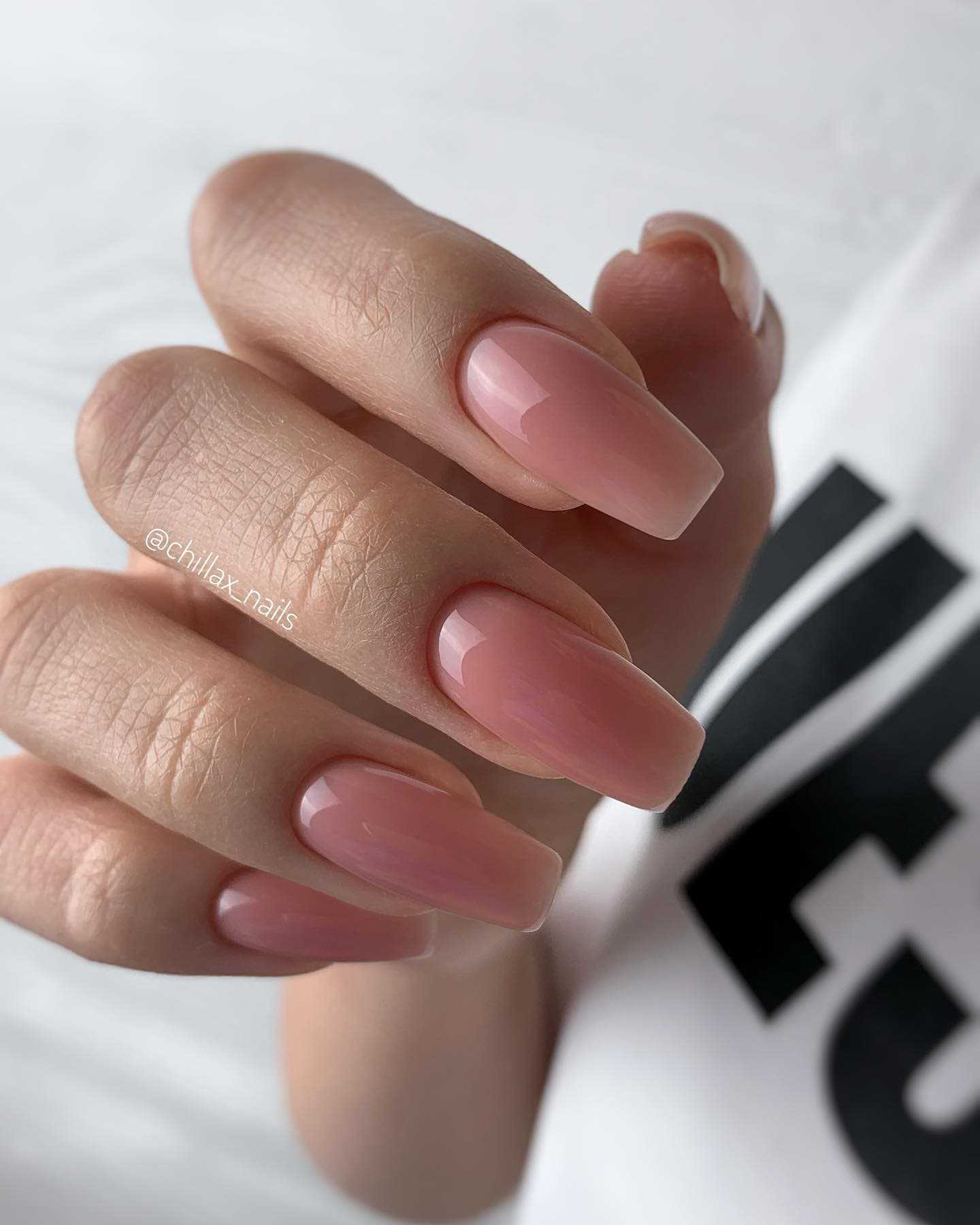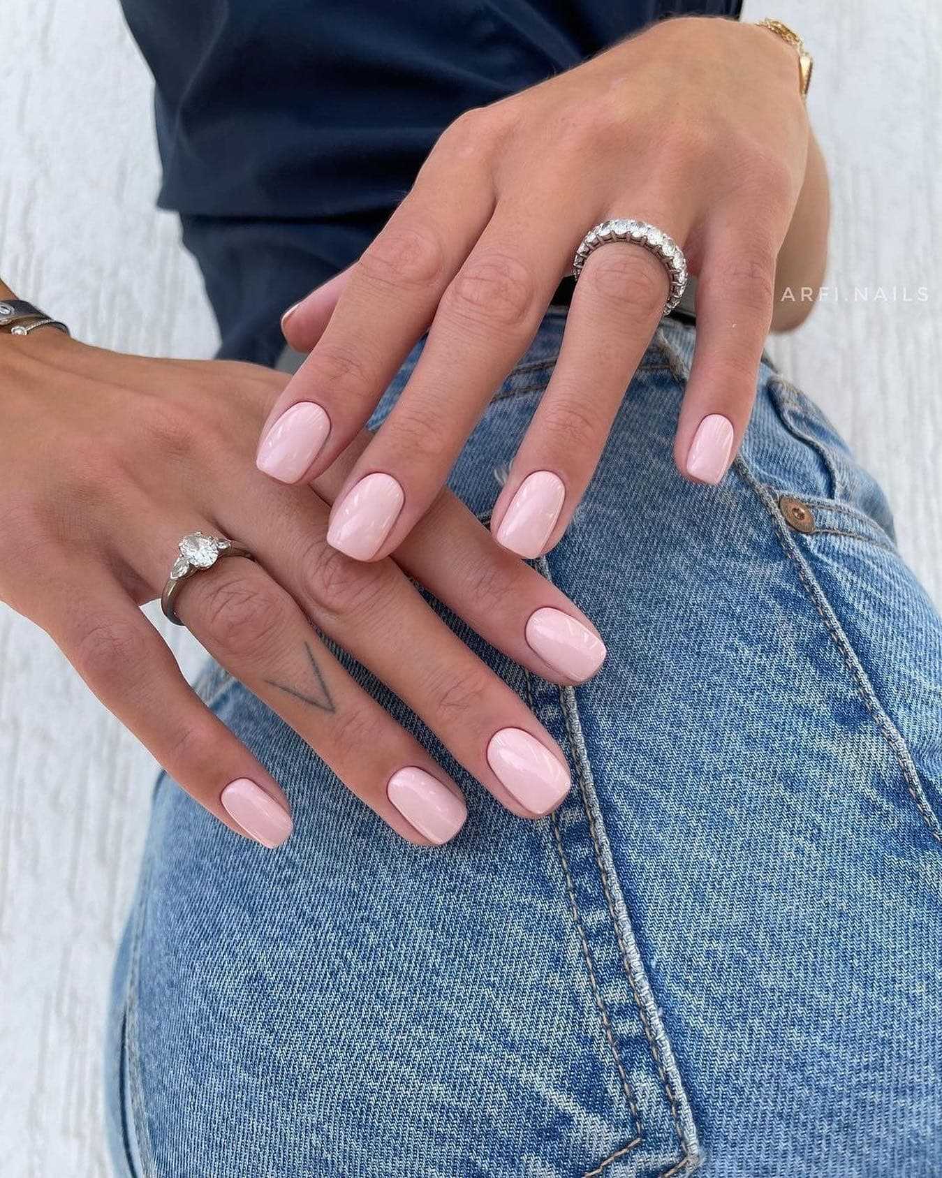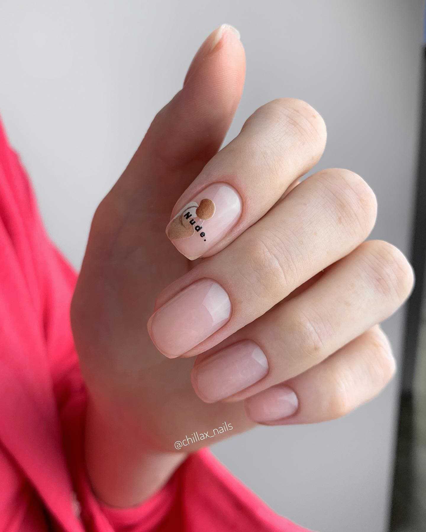 Когда мы говорим о нежных ногтях, имеем в виду полупрозрачные базы или молочные оттенки. Одно из больших преимуществ розового маникюра на короткие ногти является то, что он идеально вписывается в рамки учебного или рабочего дресс-кода. Помимо этого, нюд позволяет создать эффект “своих ногтей, только лучше” — максимальная естественность и ухоженность одновременно.