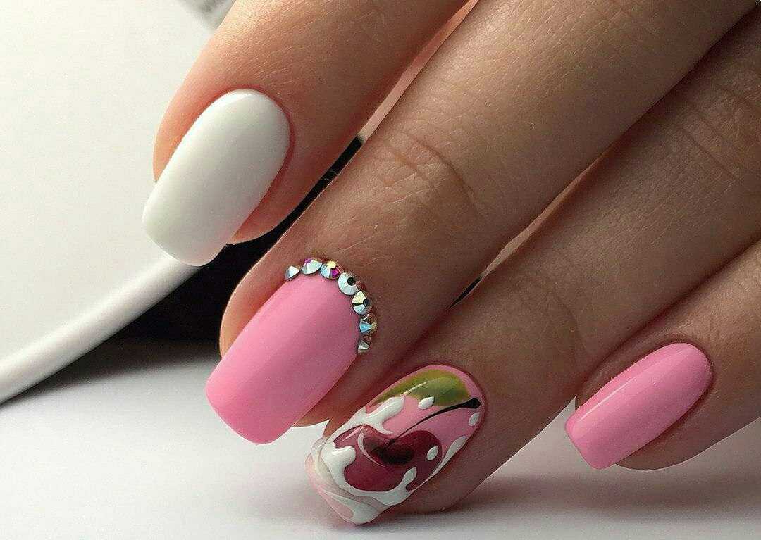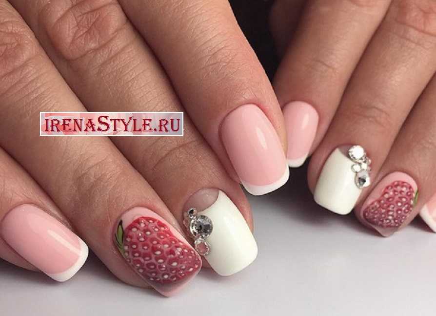 Летом будут актуальны морские рисунки. Очень красиво смотрятся на белом фоне синие или голубые морские волны. Также актуальны иллюстрации с ягодами и фруктами. Необычно и стильно будет выглядеть золотистый якорь в сочетании с ракушками и стразами. Крутой дизайн можно создать при помощи рисунков в виде пальм, одуванчиков и сердечек. Новомодный вариант — силуэты лиц, кактусы и авокадо.