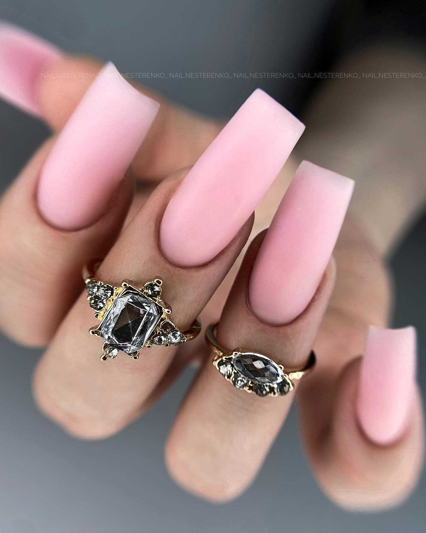 Нежно-розовый маникюр на квадратных ногтях 2022 фото