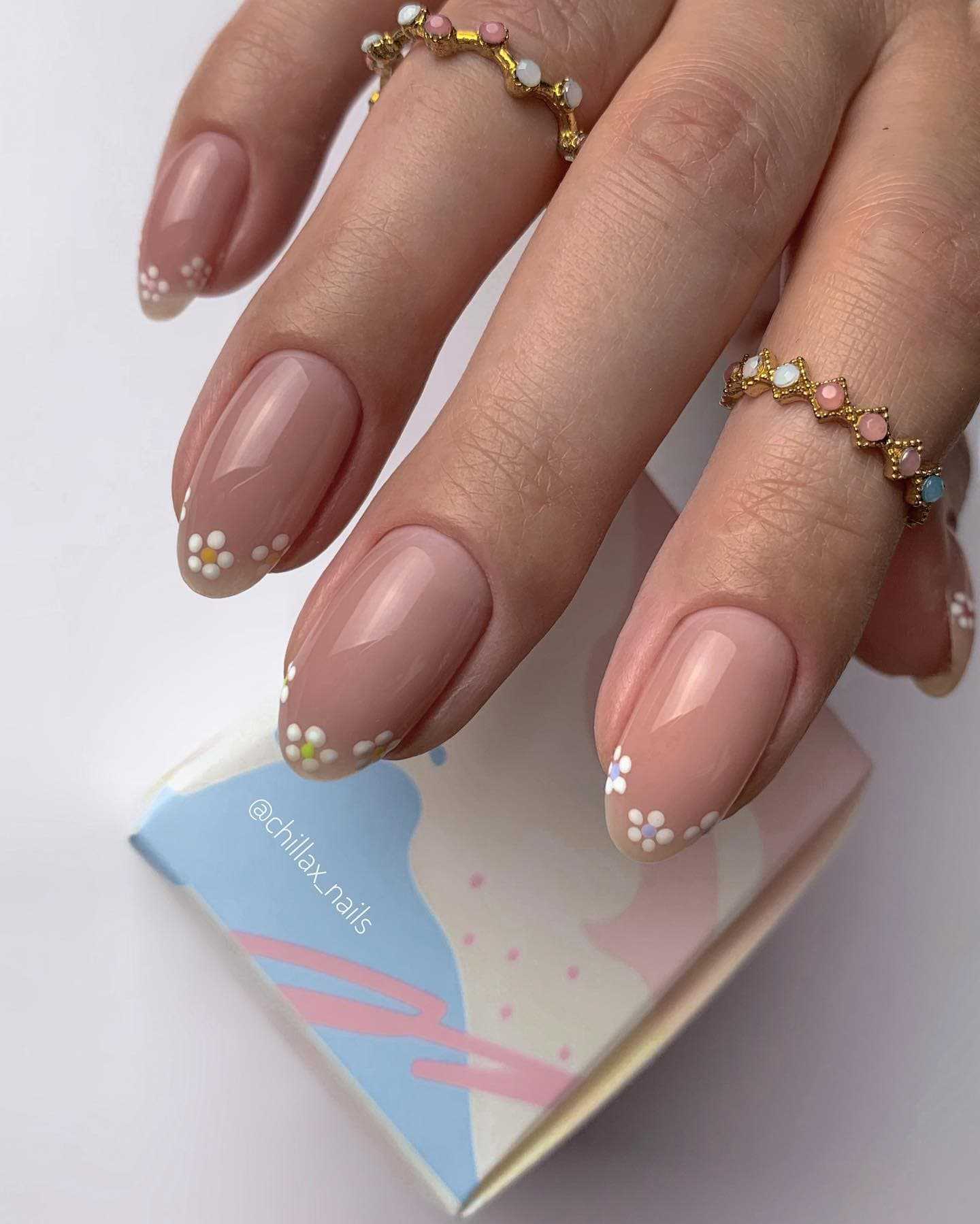 Весенний сезон 2023 года представлен в пастельных тонах и нежных рисунках. Здесь будет актуален маникюр с бабочками, цветочками и веточками. Милые и застенчивые девушки могут выбрать ромашки, кокетливые модницы — пионы, а деловые женщины — розы. Также в моде васильки, тюльпаны, хризантемы и лютики. Что касается цветовой палитры, белый гель-лак можно сочетать с нежно-голубым, бежевым, розовым, синим и фиолетовым.