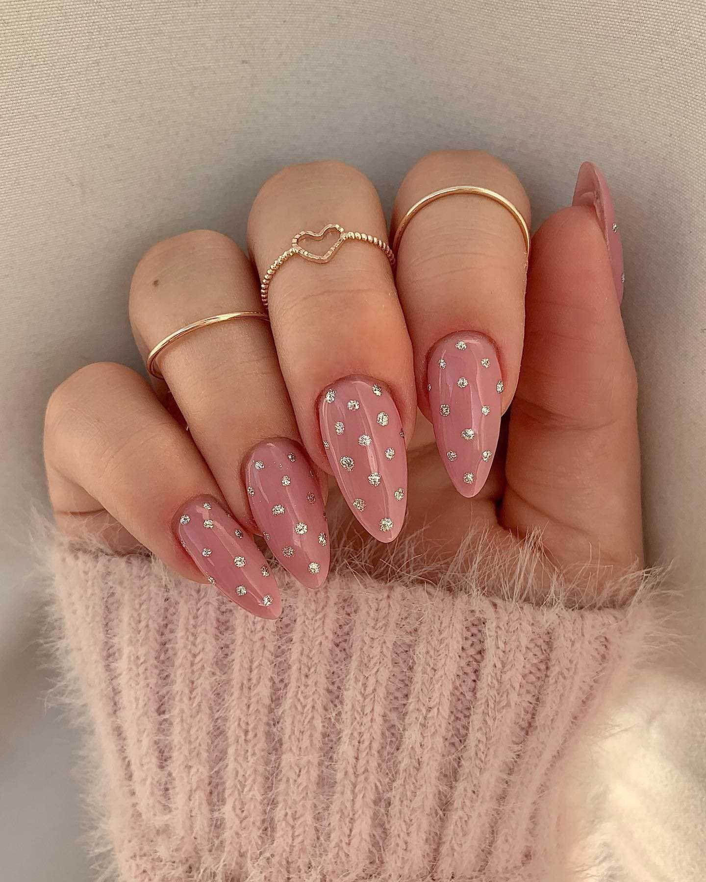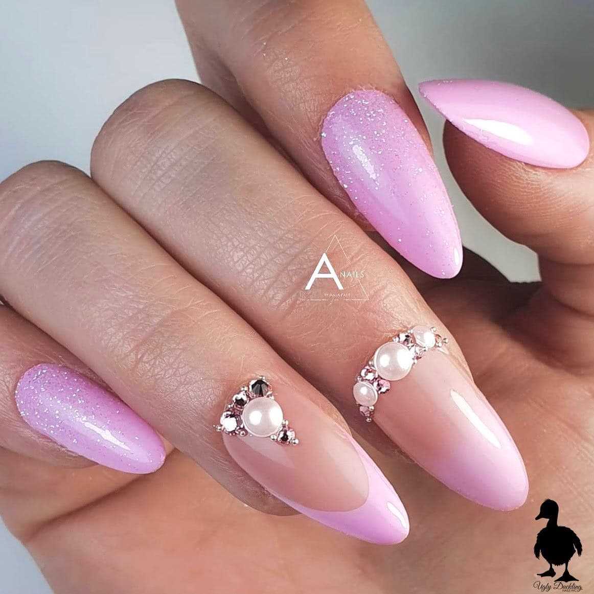 Красивый розовый маникюр со стразами в нашей фото-подборке: