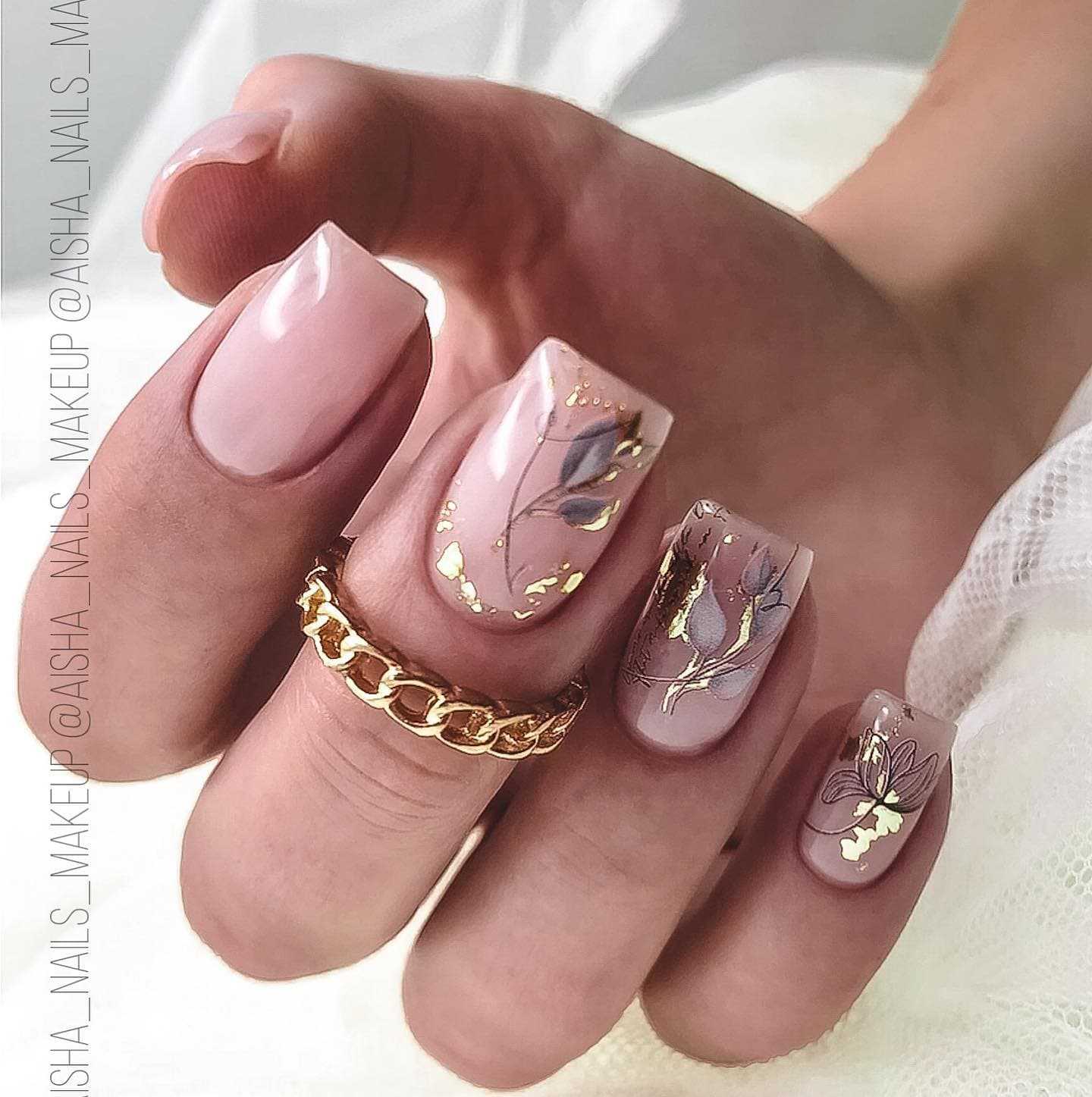 Нюдовые или пудровые цвета, хорошо смотрятся на овальной форме. Сочные цвета подойдут форме квадрат. На коротких ногтях, удачным оформлением будет объемная геометрия, плотные блестки, флористика.