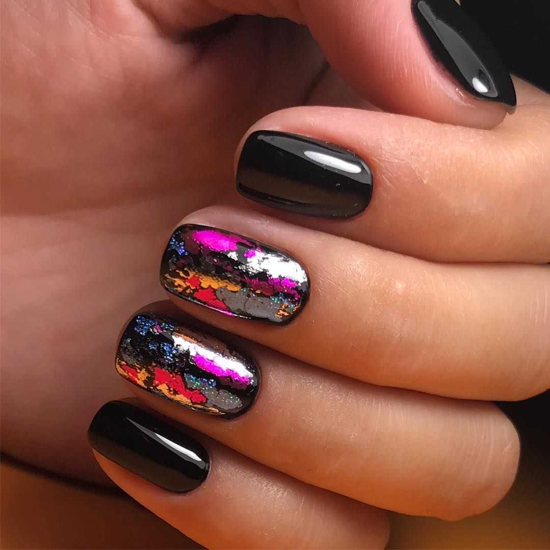 Что касается лаков для ногтей, то можно использовать массу интересных новинок: лак с космическим эффектом, кракелюр или лак с цветными вкраплениями.