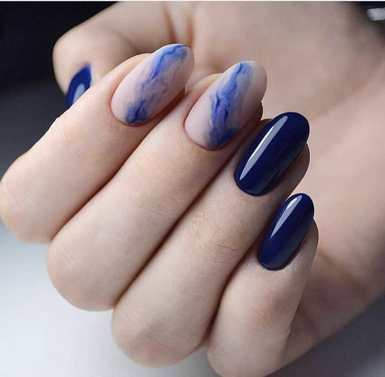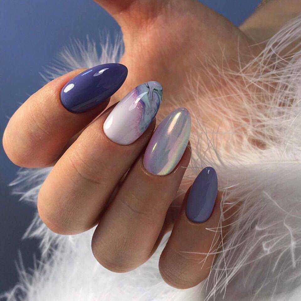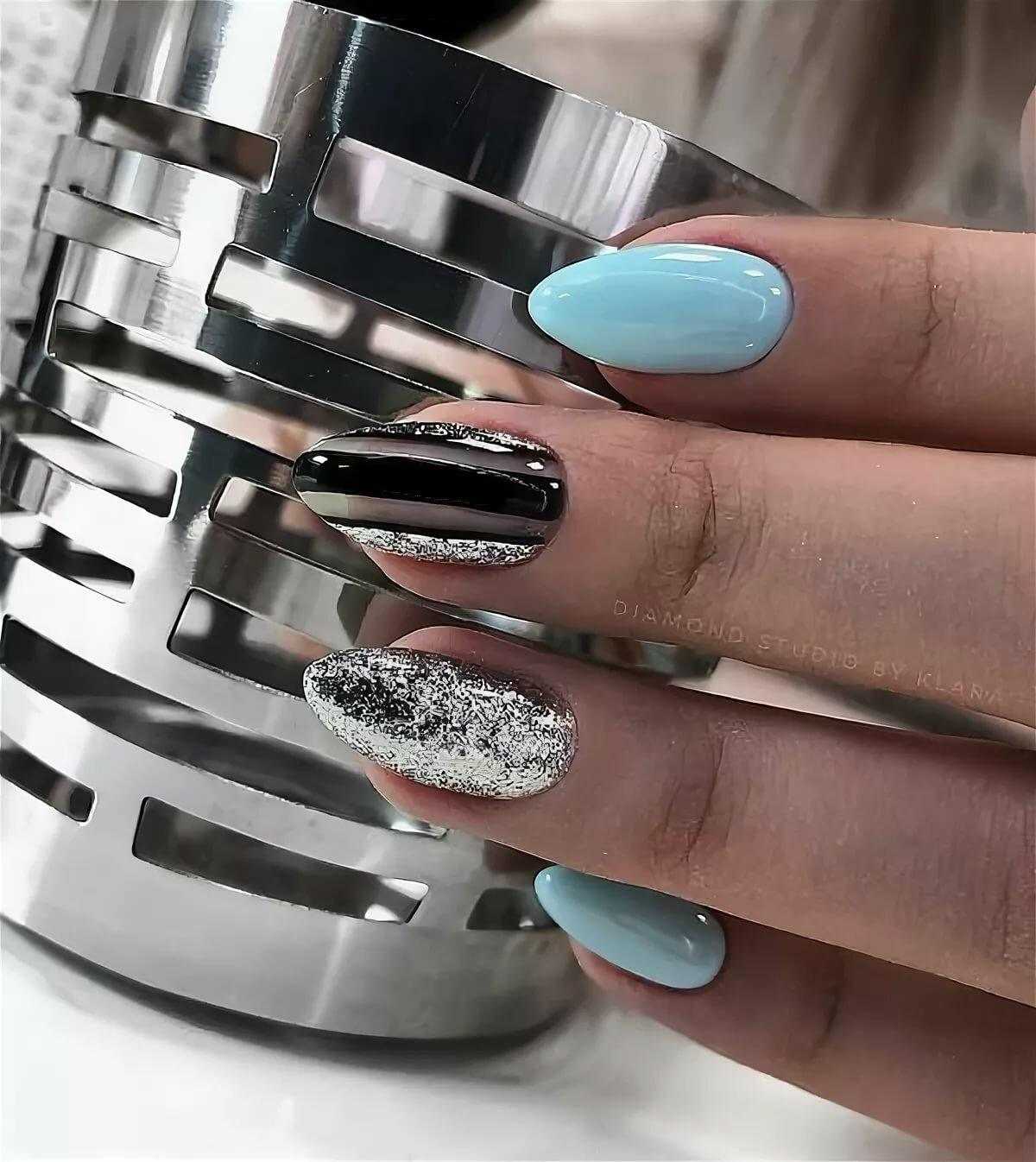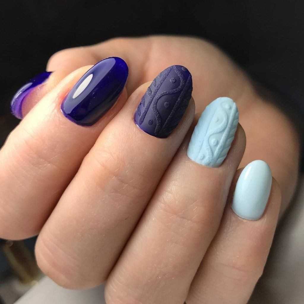 Стильный зимний маникюр в серо-синих тонах