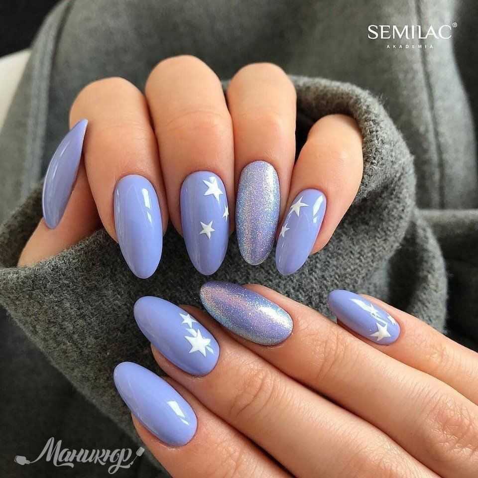 Зимний маникюр в фиолетово-голубой гамме