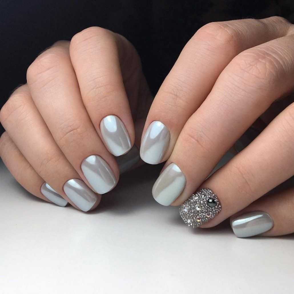 Металлик. Не забыли в этом сезоне мастера маникюра и о покрытиях, имитирующих на ногтях металлизированную поверхность. Их можно использовать не только для создания различных акцентов. Гель-лаки серебряного и золотого цвета будут интересно смотреться и в однотонном оформлении.