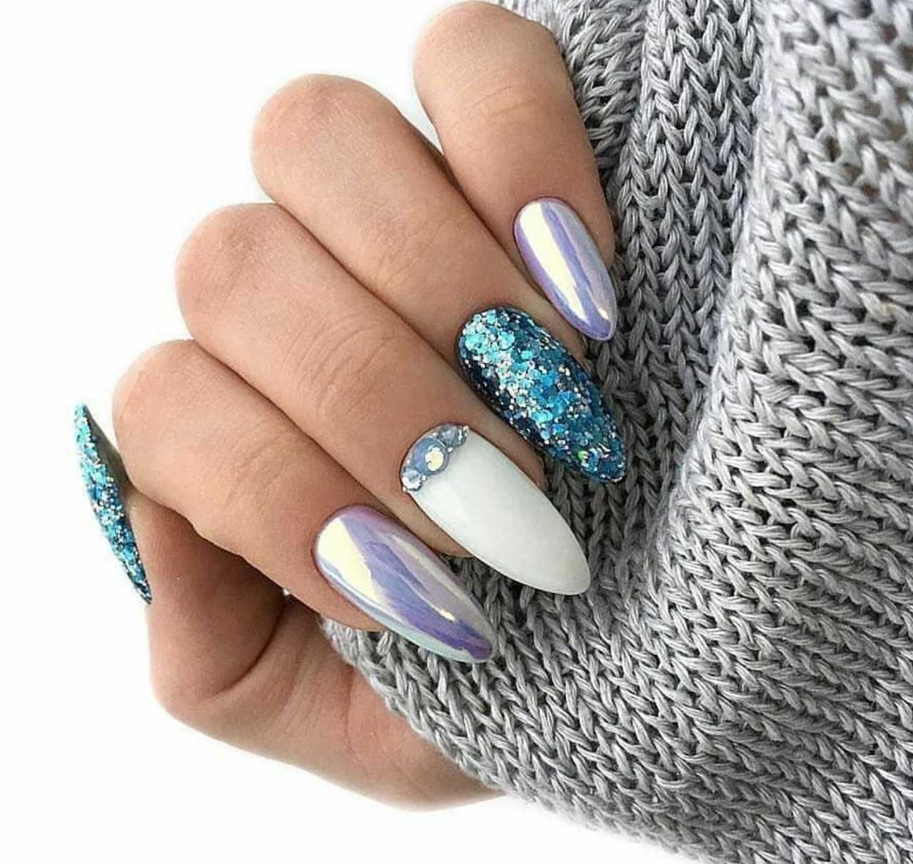 Зимний маникюр с крупным глиттером