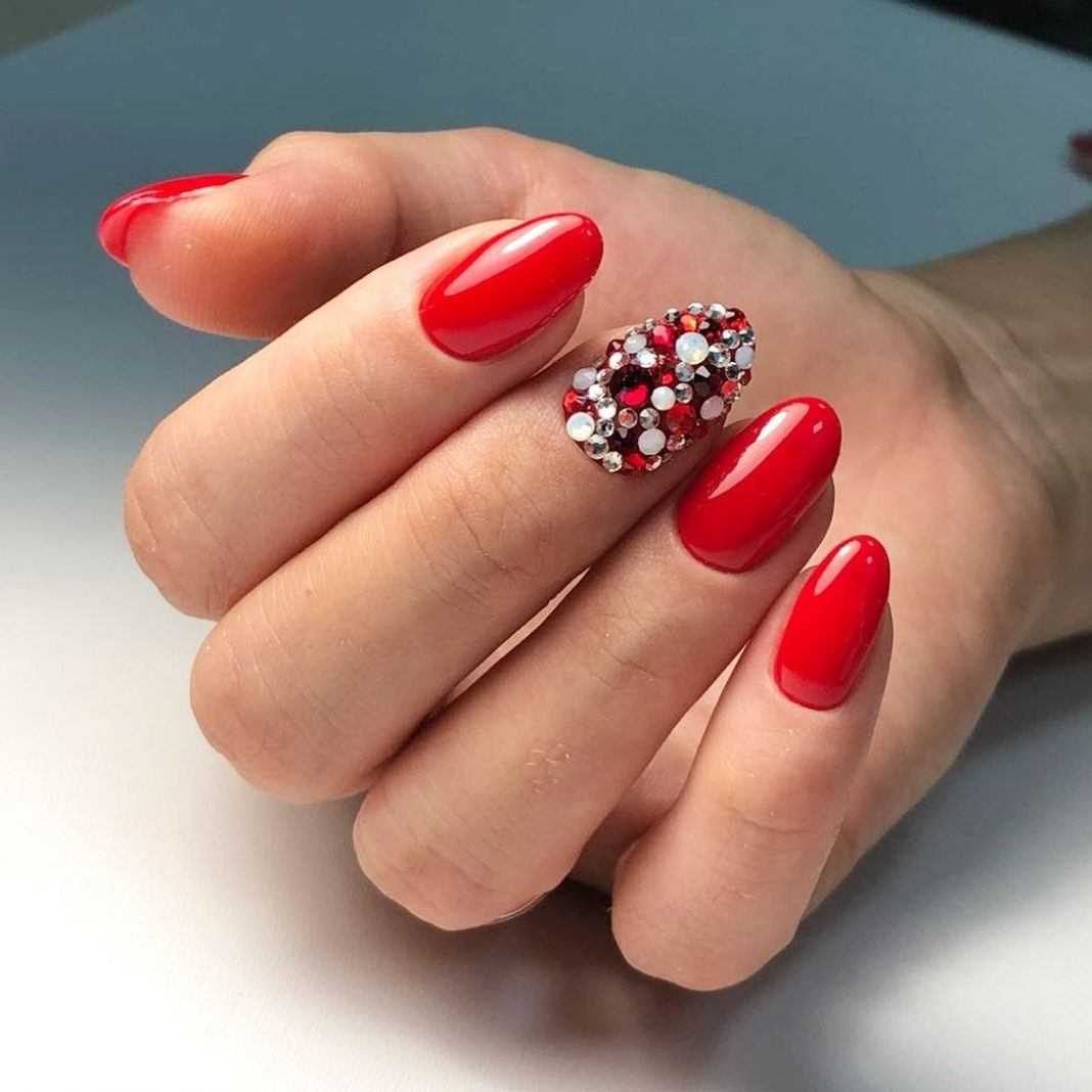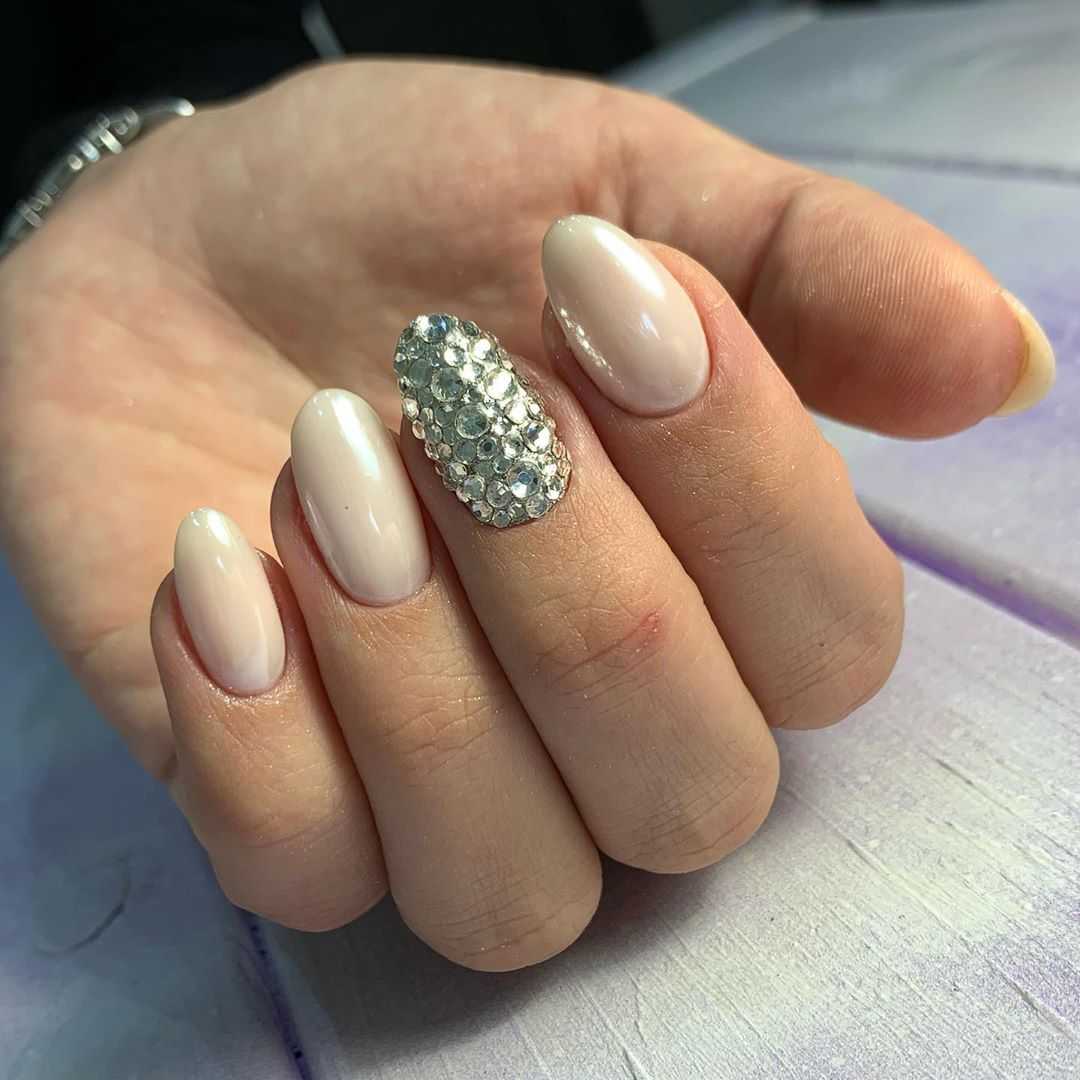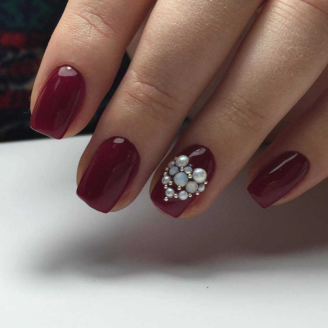 Стразы и бульонки. Бульонки чаще всего можно встретить серебристого (стального) цвета, но бывают и цветные варианты. А стразы, которые часто дополняются бульонками, бывают практически всех оттенков, так что вариантов для создания однотонного маникюра может быть множество.
