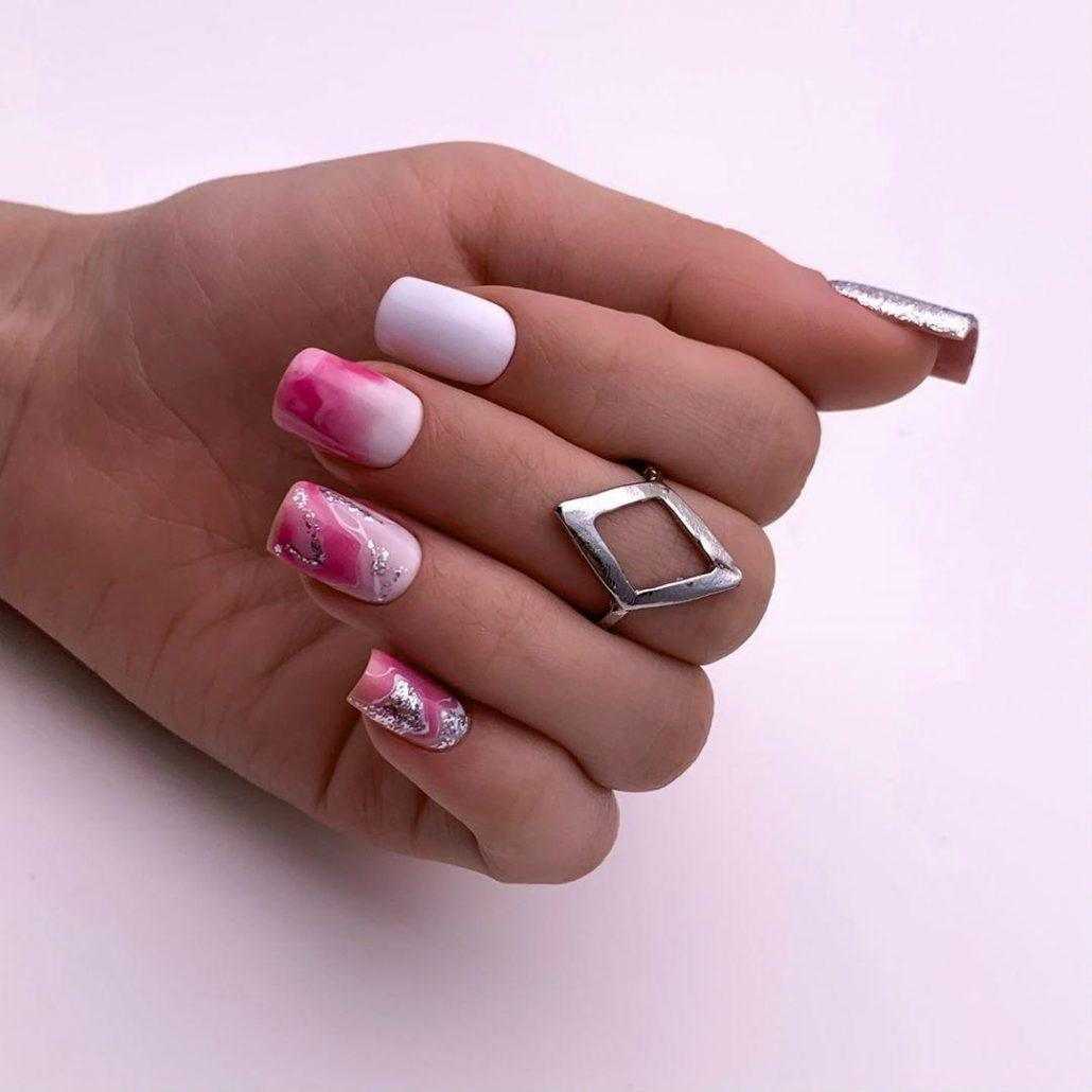 Квадрат с острыми углами также является классикой, поэтому без него никак нельзя обойтись в 2021 году. С помощью острых углов можно получить интересный дизайн, который подчеркнёт элегантность рук и пальцев.