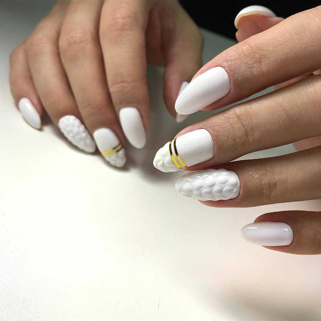 Белый маникюр – лучший вариант для декора длинных ногтей. Во-первых, белый гель-лак шикарно смотрится на загорелой коже, выглядит сдержанно и элегантно, во-вторых, дизайн в белом цвете – один из самых популярных среди трендов 2020 года.