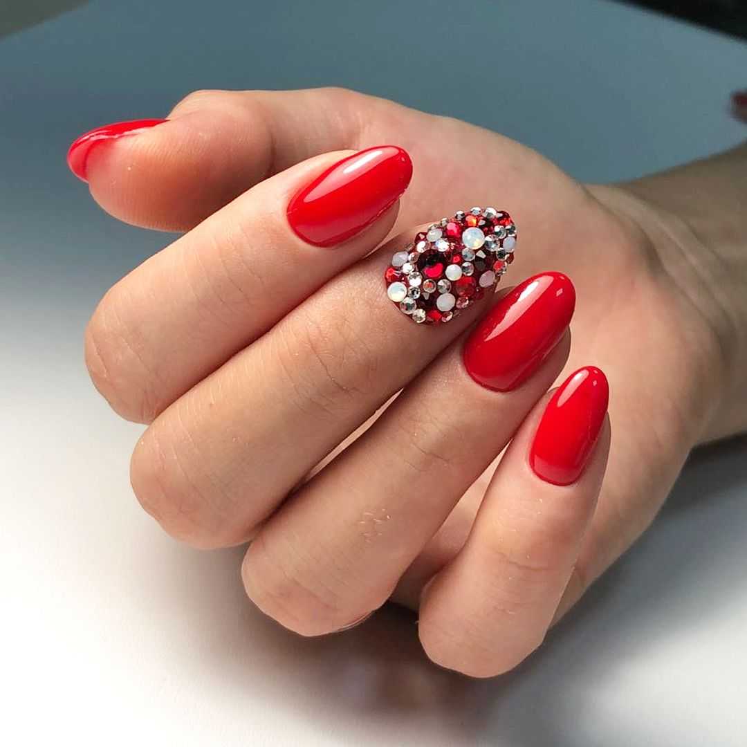 Показать красоту и глубину красного цвета помогут однотонные нейл-арты. Для такого дизайна можно использовать насыщенные оттенки красного, например, вишневый, гранатовый, бордо и другие