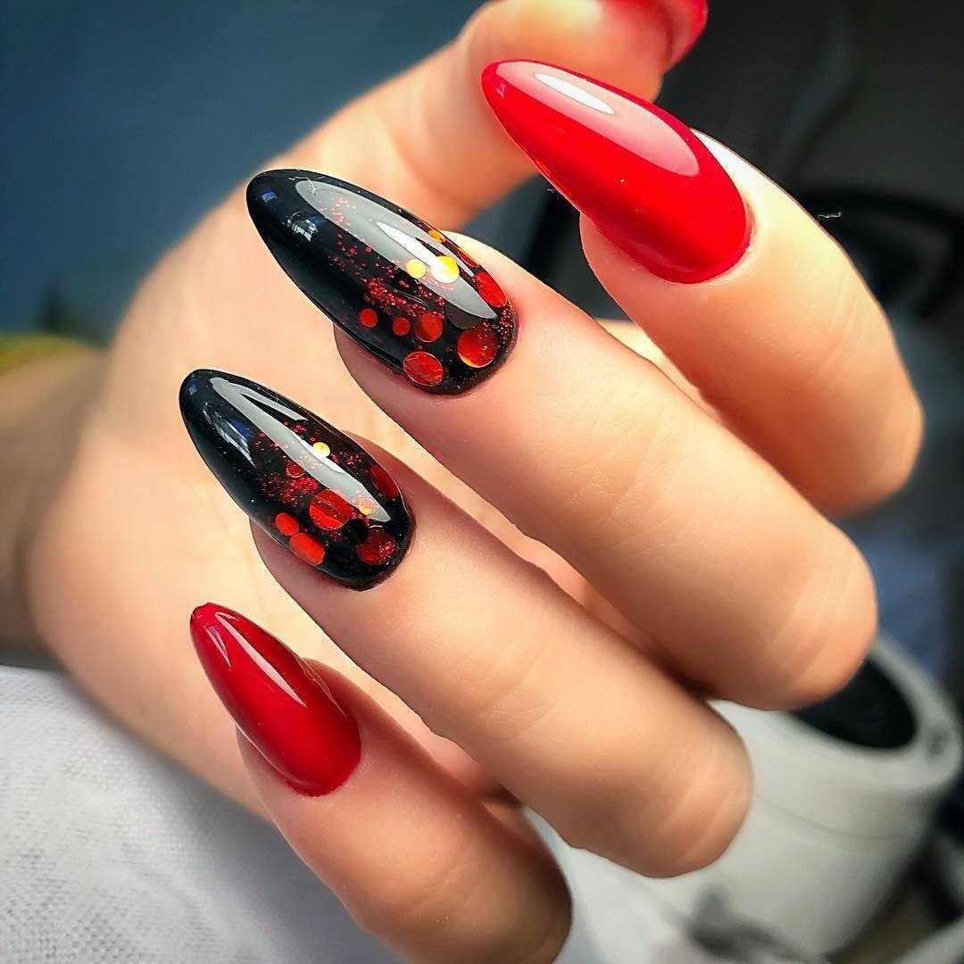 Ввиду универсальности черного цвета, данный вариант красного маникюра в 2019 году будет смотреть практически всегда актуально и свежо.
