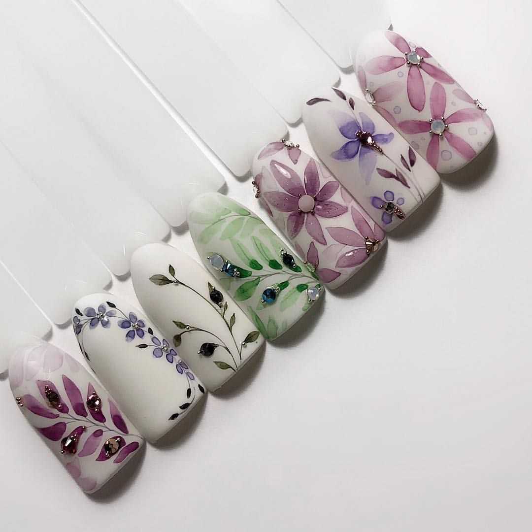 Акварельный дизайн ногтей предлагает массу вариаций различных узоров, которые подойдут как для повседневного маникюра, так и для торжественного мероприятия или романтического вечера.