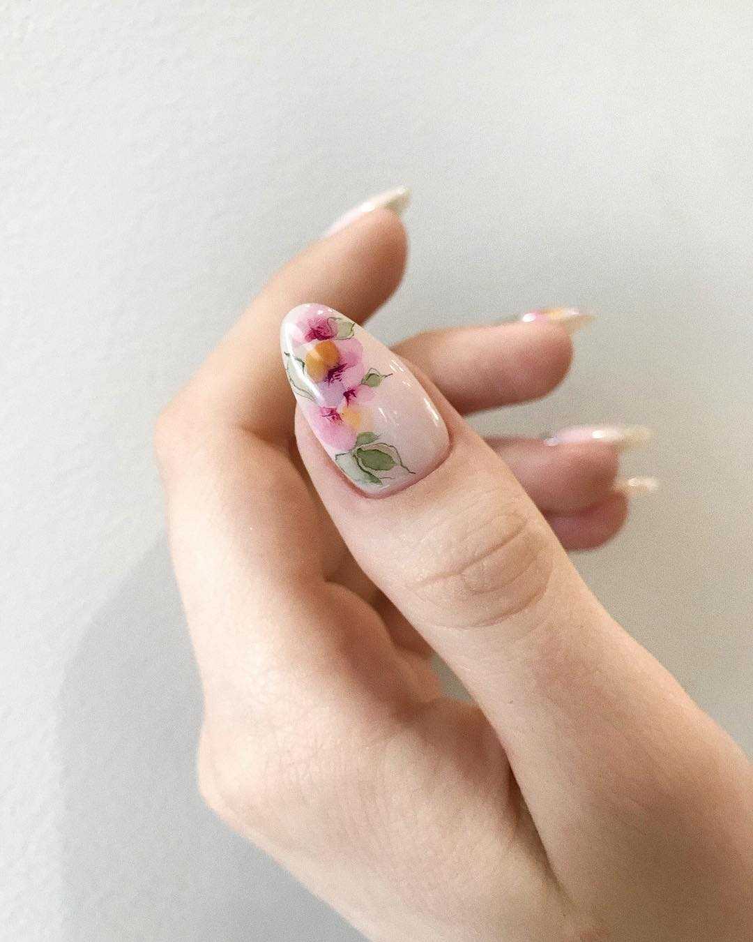 4. Требование к длине непринципиальны: рисование акварелью добротно смотрится и на длинных, и на коротких ногтях. Вопреки распространенному мнению, короткие ногти тоже могут предоставить достаточно пространства для творчества.
