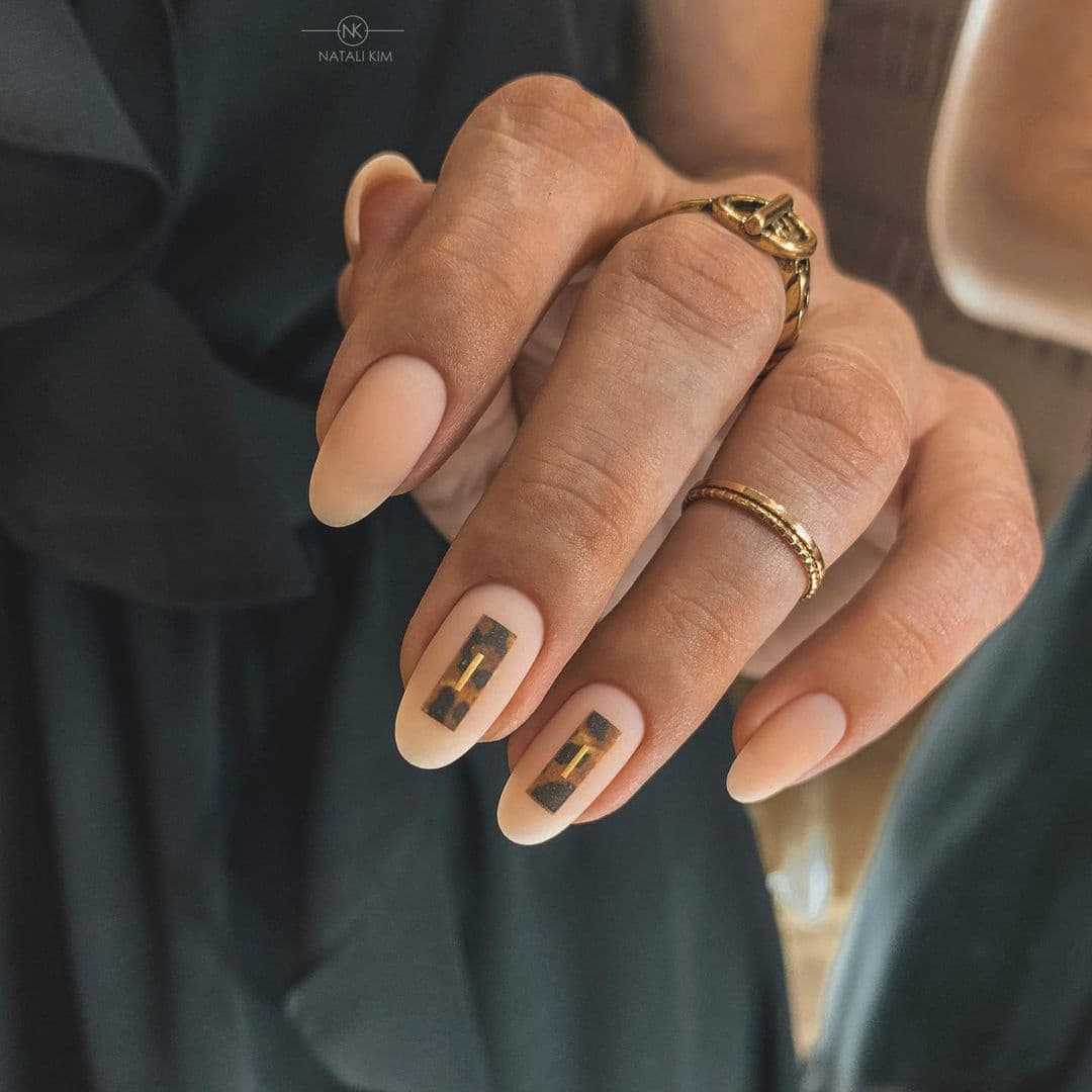 Нюдовый маникюр с анималистическим акцентом