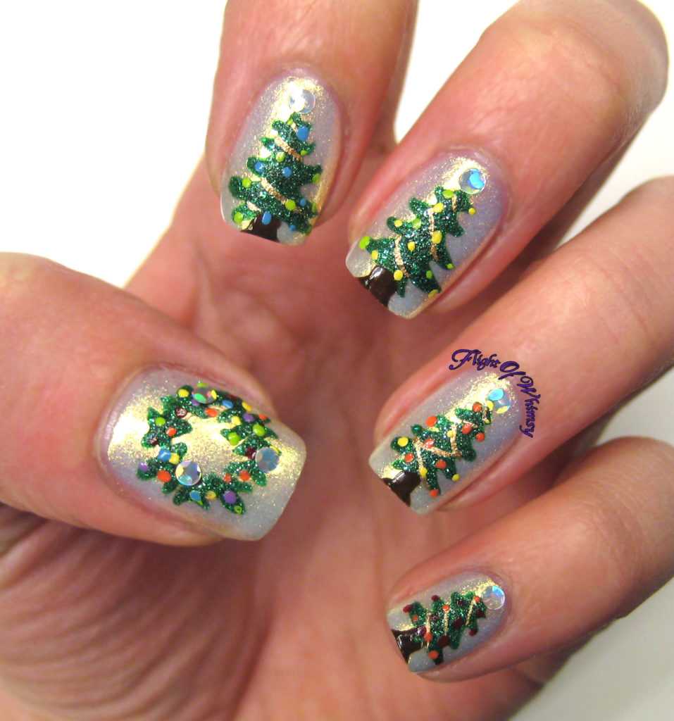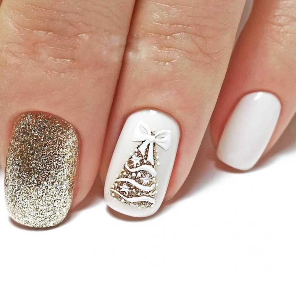 Не менее эффектно смотрится зимний маникюр с елочками, дополненный украшениями в виде страз или блесток. Такой дизайн будет отлично вписываться в любой праздничный образ!