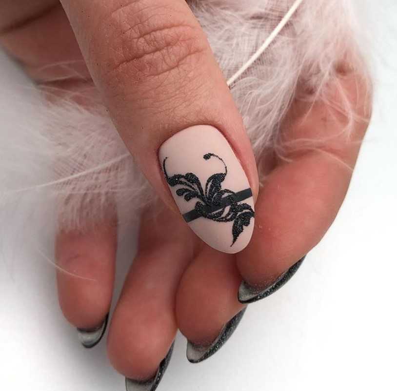 Дизайнеры предлагают попробовать разные цвета бархатистого лака. Возможно, накрасить несколько ногтей ярким, остальные темным, или, наоборот, светлым, оставляя негативное пространство. Вензеля и линии не будут лишними.