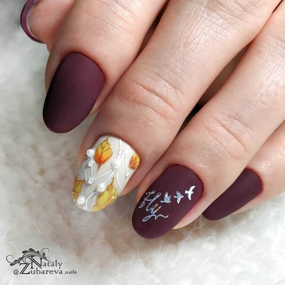 Матово-глянцевый осенний маникюр