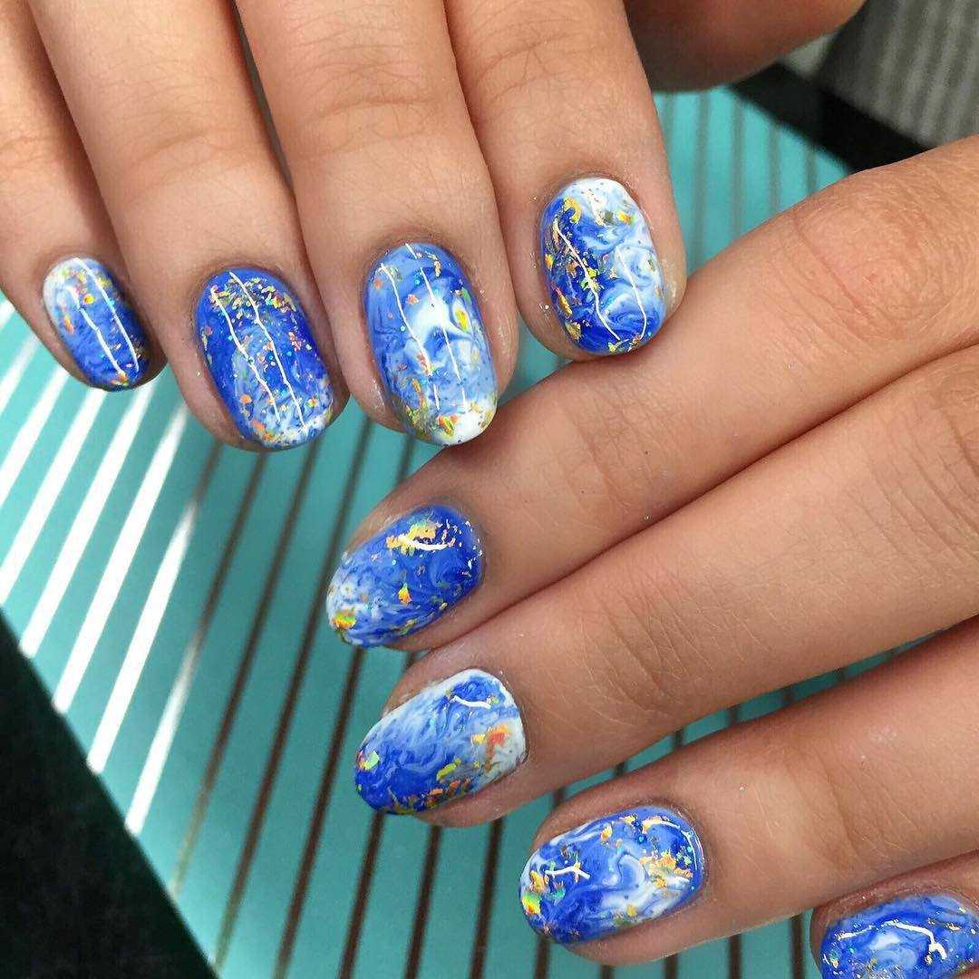 Если вы не хотите использовать жидкость, можно приобрести гель лак с мраморным эффектом