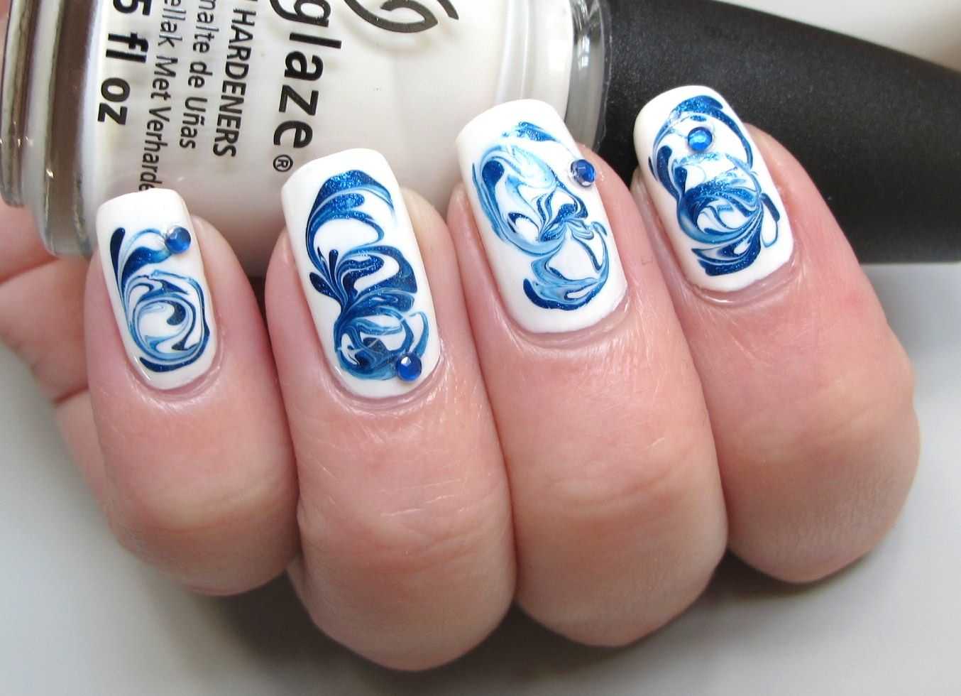 Что касается маникюра с разводами в белом цвете, то смотрится он особенно красиво