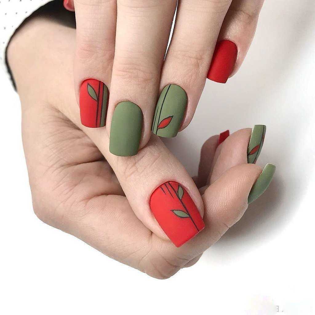 Настоящим хитом в декорировании зеленого маникюра считается матовое покрытие. Бархатистая текстура придает рукам теплоты, нежности и утонченности. Благодаря своей наполненности, маникюр выглядит гармонично и без дополнительного украшения. А если вы все-таки решили усовершенствовать свои ноготки, то дополните маникюр минимальным декором в виде мелкого рисунка или россыпи камней. Ваши ручки станут только женственнее и изящнее. Зеленое матовое покрытие ногтевой пластины комбинируют с белым или нюдовым. Торжественности и шика можно добавить с помощью золота.