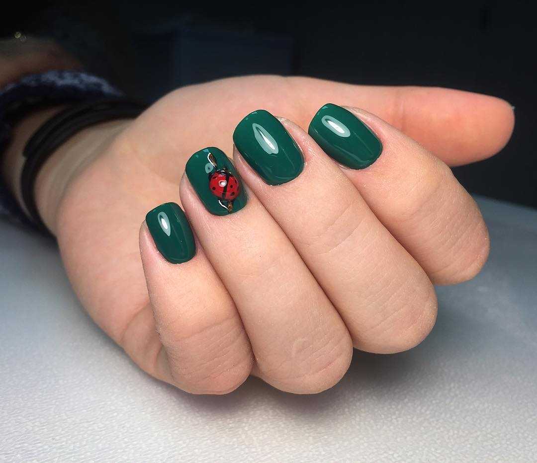 Маникюр в темно-зеленом цвете подходит как для повседневной носки и отлично сочетается с разнообразными женскими образами на каждый день, так и для праздничного look’a. Главное – подобрать соответствующий дизайн.