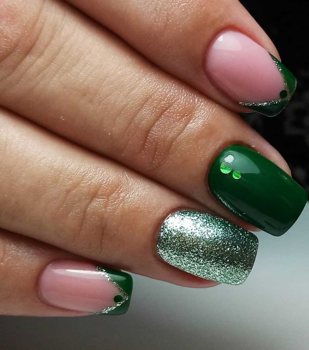Темно-зеленый и светло-зеленый маникюр: фото 2022-2023