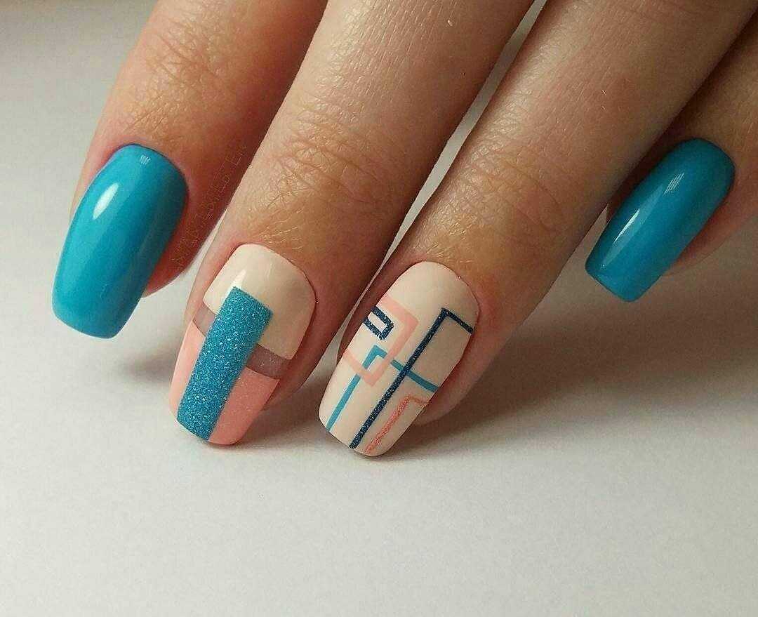 Тренд 2020-2021 года – игра цветов и фигур. Для такого дизайна используют ромбы и квадраты, круги и треугольники. С их помощью можно визуально удлинить ногтевую пластину, а сам образ сделать немного задорным.