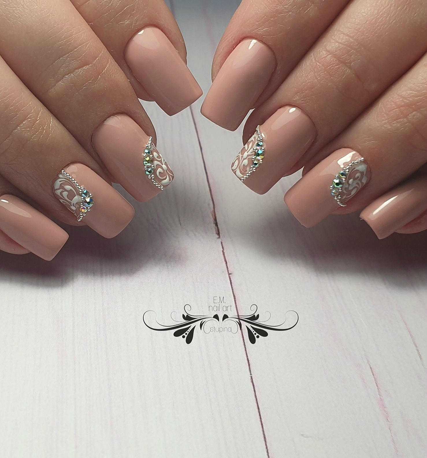 Модницам предложено немало шикарных идей с разнообразным декором и принтами, которые позволят не только насладиться великолепием светлого покрытия, но и привлекут внимание к ручкам при помощи эффектных украшений. Нейтральная палитра в дуэте с блестящим декором или аккуратными изображениями уместно смотрится в офисе и за его пределами, красиво дополняет любой праздничный наряд и актуальна в любой ситуации