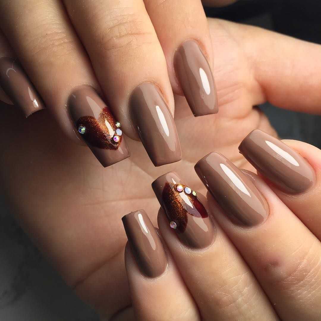 - коричневый. Необычный оттенок для маникюра в светлых тонах. Например, это цвет вкусного сливочного капучино или кофе раф. Обычно здесь преобладают сливочные, персиковые, оранжевые нотки;
